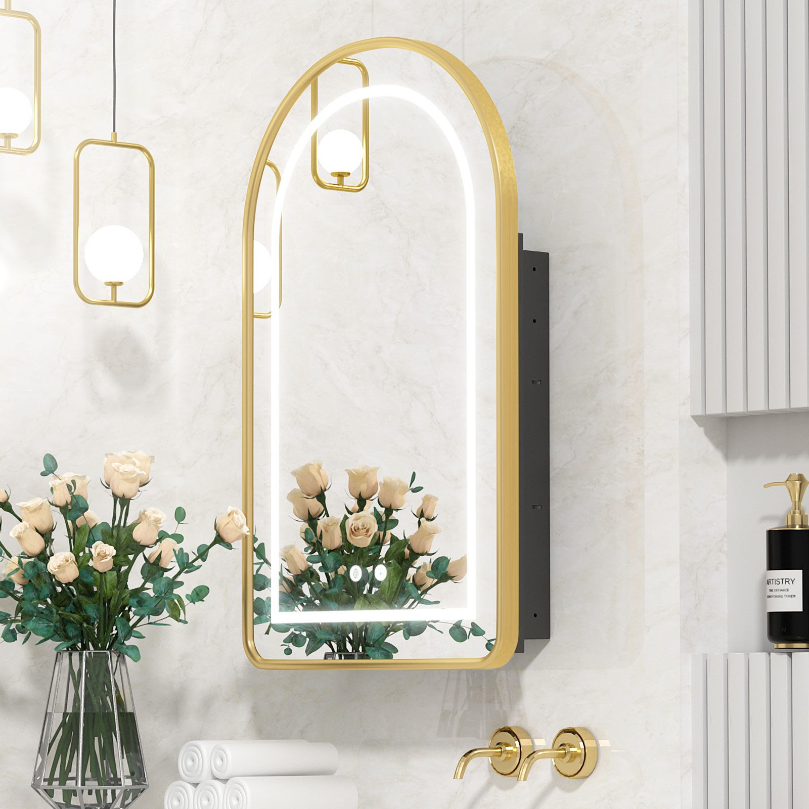 Der RADELLDAR Badezimmerschrank mit Spiegel ist ein modernes Möbelstück für das Badezimmer. Es gibt ihn in drei Farben: Schwarz, Gold und Silber. Die version mit Lichtband verfügt über eine Nebelentfernung, wohingegen die ohne Licht keine solche Funktion hat.