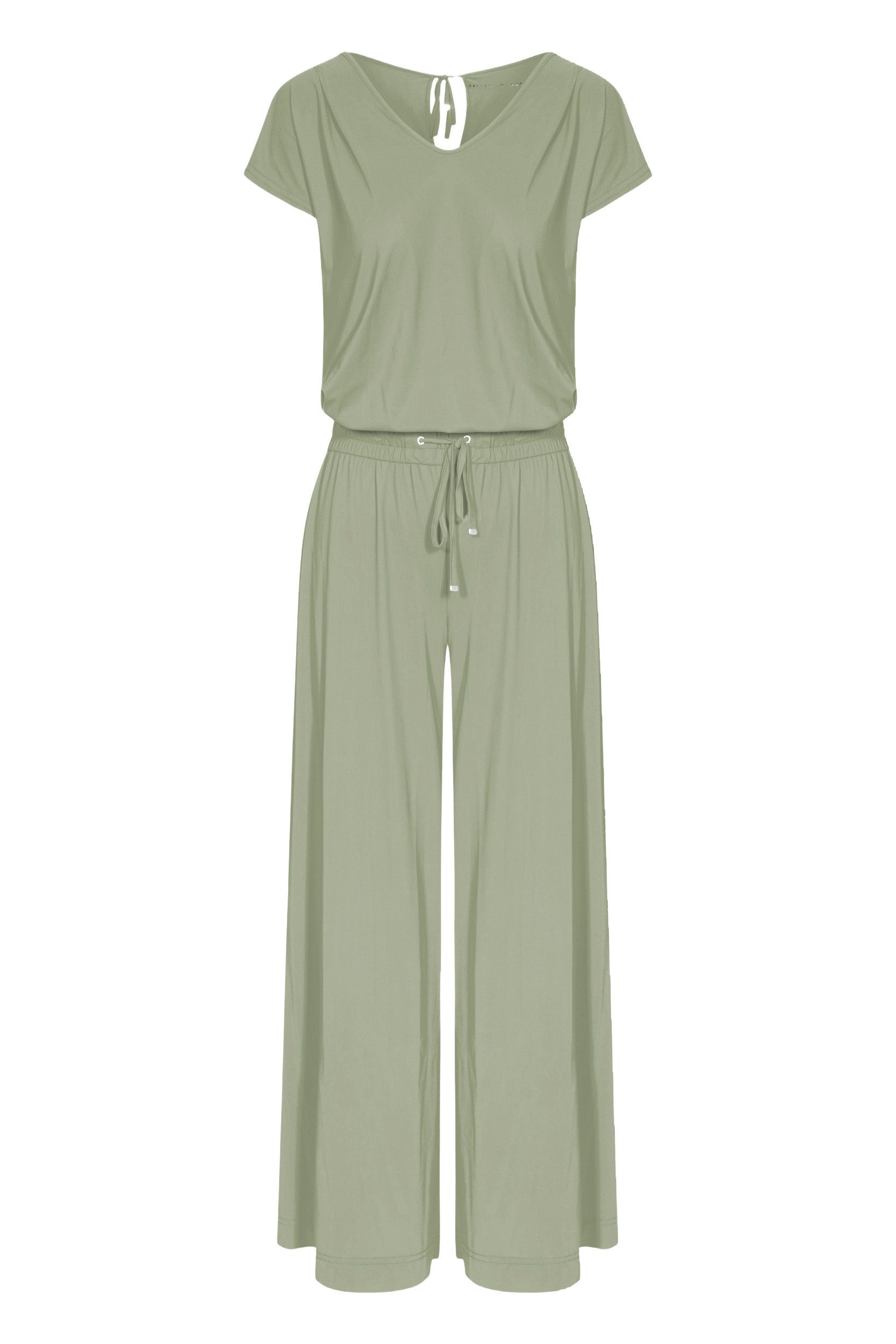Der trendige Jumpy Jo in salbei ist ein supermoderner Hosenanzug im Marlenehosen-Style mit raffinierter Schnittführung und aufwendigen Details.