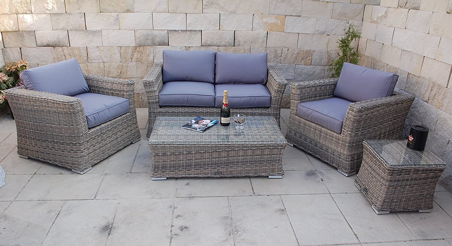 Information Materialzusammensetzung | Aluminium pulverbeschichtet 100% Polyester UV beständiges Polyrattan Die Möbel sind für den Außenbereich bestimmt und können 365 Tage im Freien stehen |