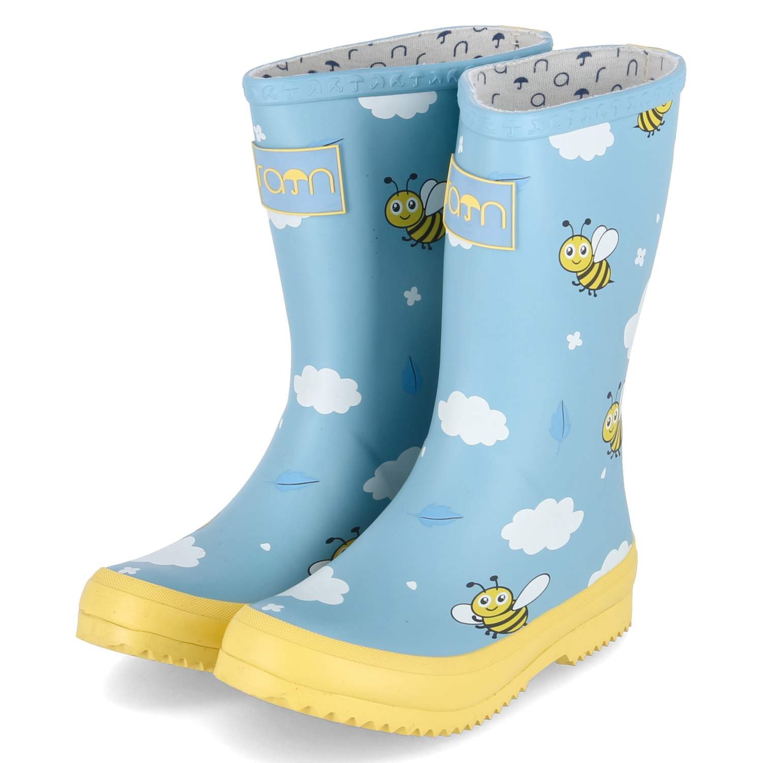 Die Rajn Kinder Gummistiefel in Blau sind perfekt für kleine Abenteurer, die auch bei Regenwetter draußen spielen möchten. Mit einem fröhlichen Muster von Bienen am Wolkenhimmel sorgen sie für gute Laune an trüben Tagen.