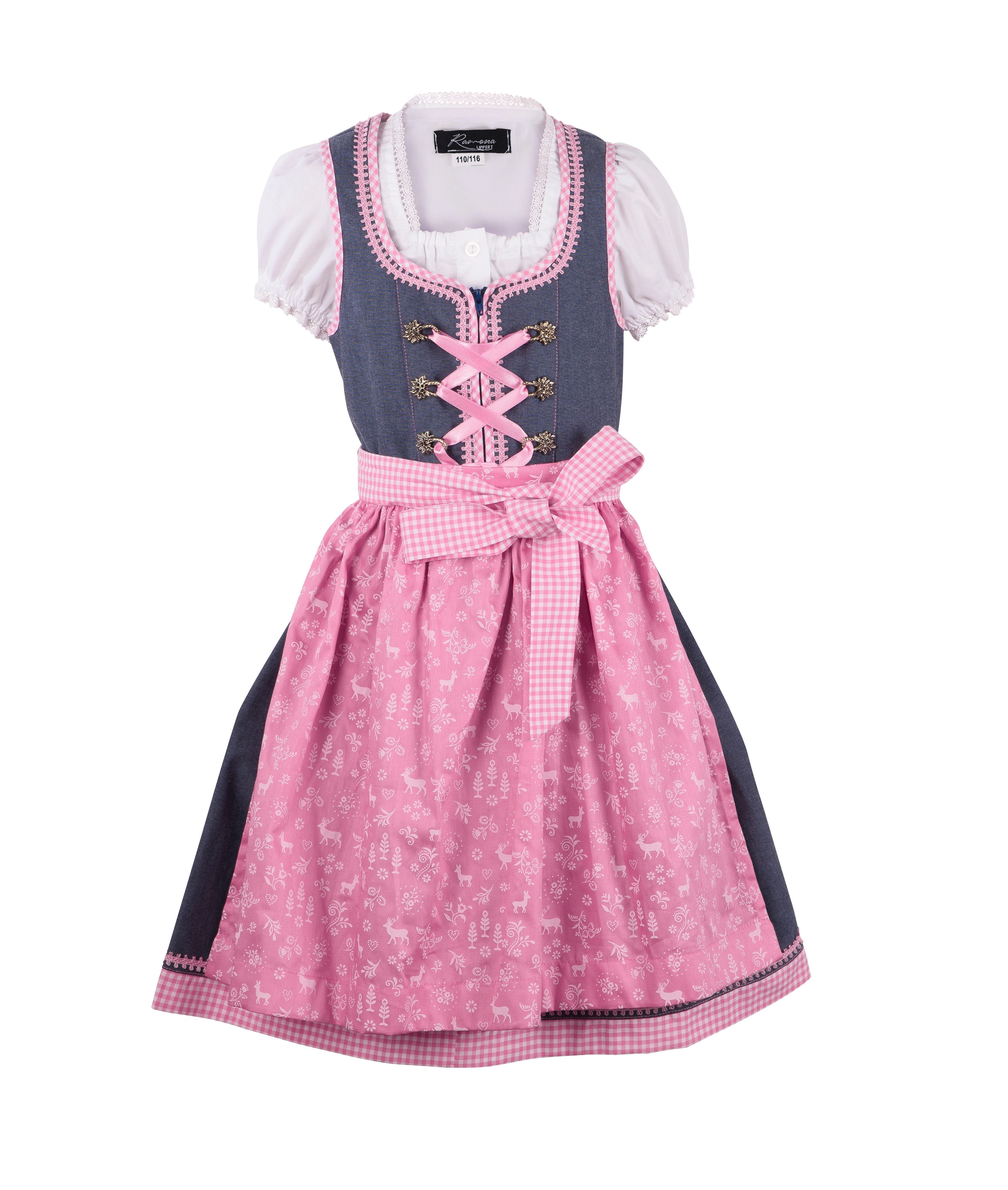 PRODUKTDETAILS - Kinderdirndl Livia in Jeansoptik - 3-teiliges Trachtenkleid mit rosa Schürze und Bluse