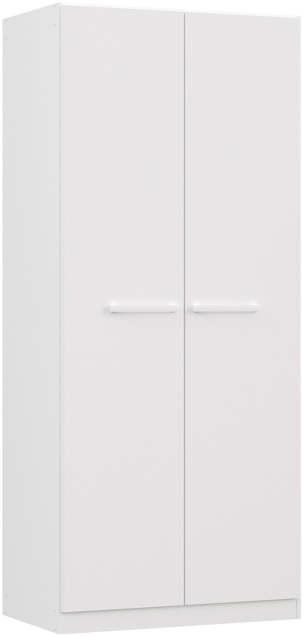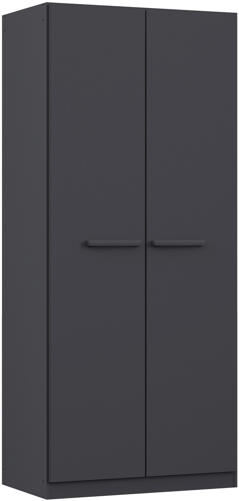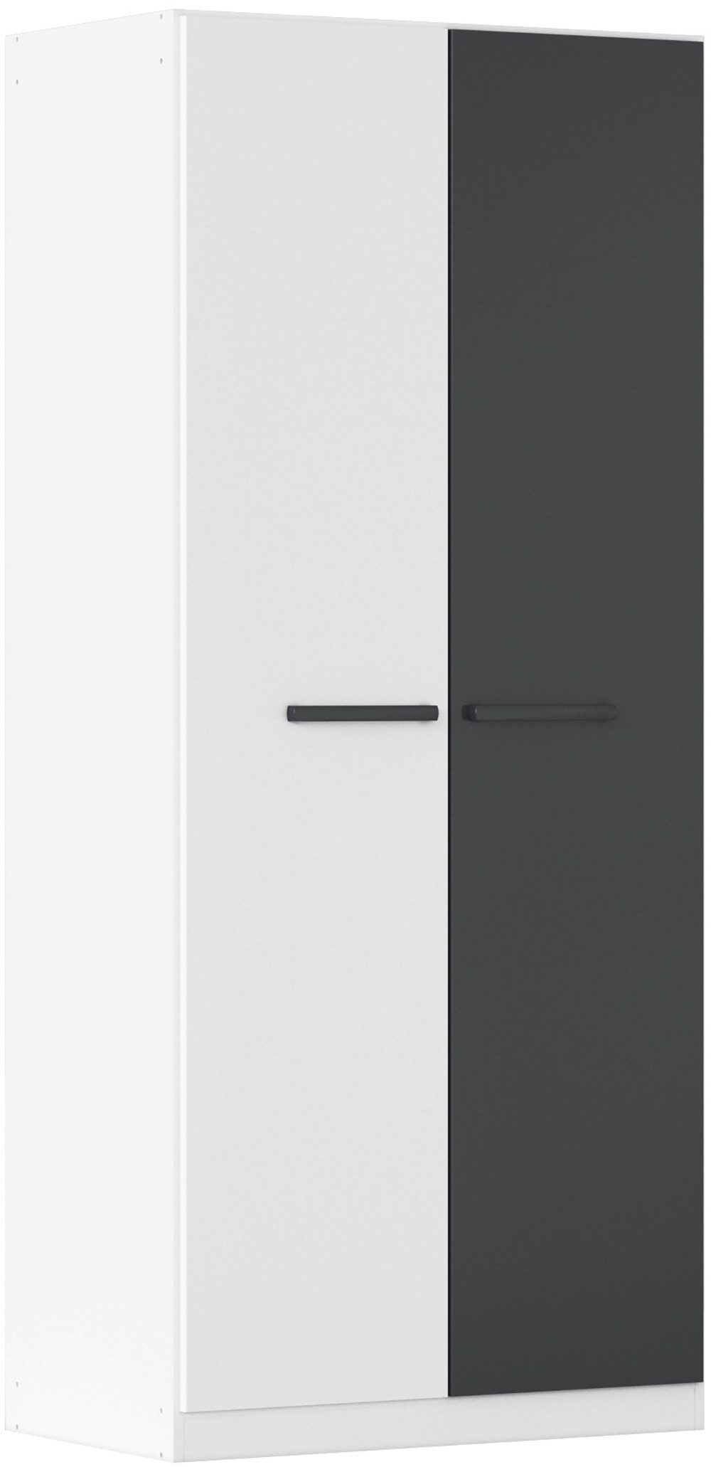 Schlichter und vollausgestatteter Kleiderschrank für jeden Einrichtungsstil: der Drehtürenschrank »Modi« von rauch mit extra Fachböden und Stoff-Organizer, optional mit Spiegel.