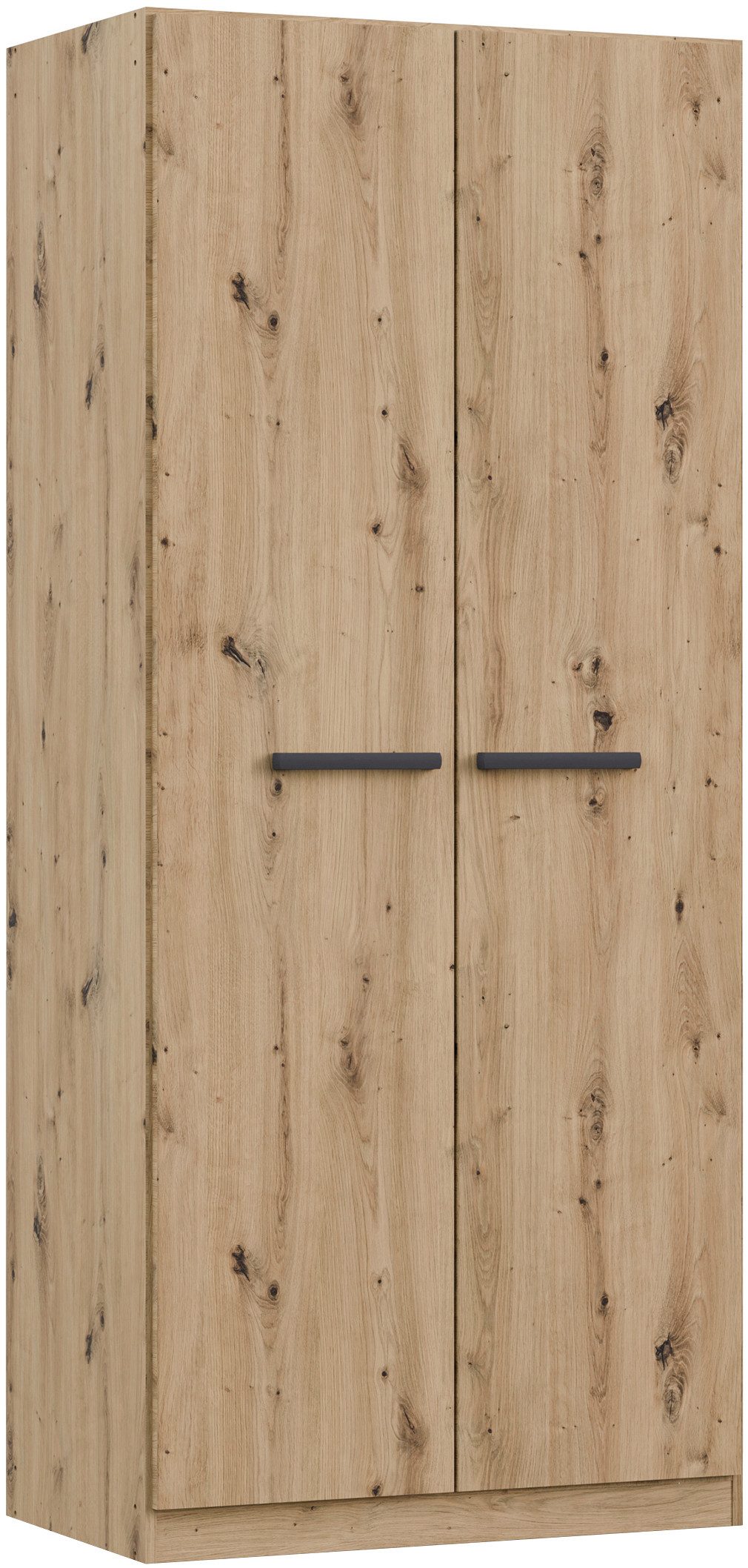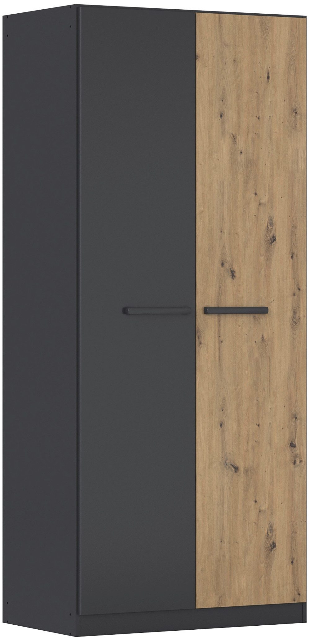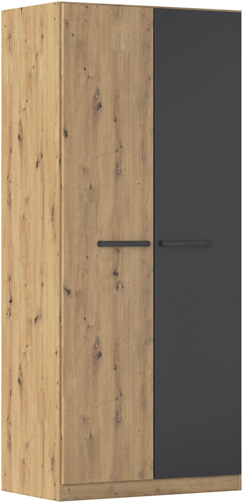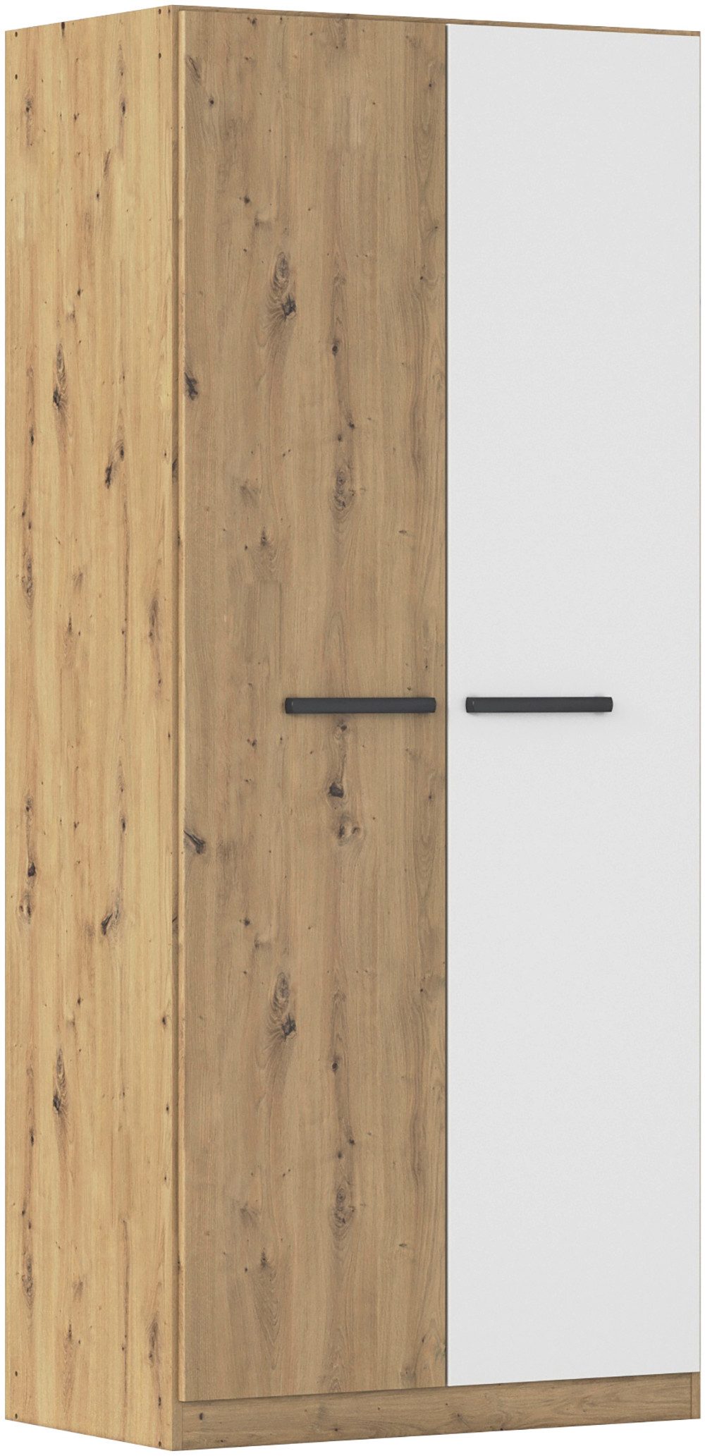 Schlichter und vollausgestatteter Kleiderschrank für jeden Einrichtungsstil: der Drehtürenschrank »Modi« von rauch mit extra Fachböden und Stoff-Organizer, optional mit Spiegel.