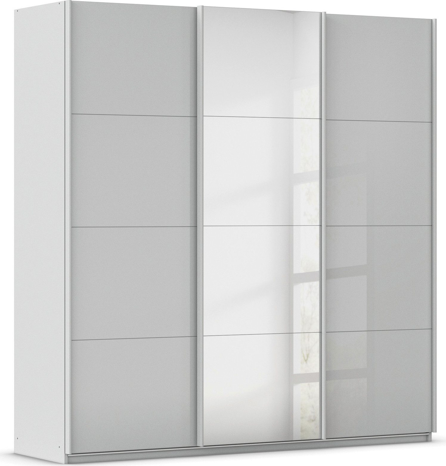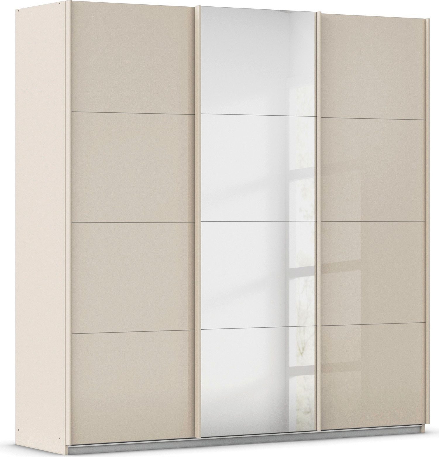 Der Schwebetürenschrank »AGORDO« von rauch versprüht ein modernes Wohnambiente und sorgt dabei für Ordnung. Schicke Griffleisten am Kleiderschrank sowie eine moderne Auswahl an Glasfarben machen das Design des Kleiderschrankes aus. Je nach Einrichtungsstil und verfügbarem Platz kannst du zwischen zahlreichen Farben, Breiten und Höhen wechseln. Das Design und die Glasfront des Schrankes kreieren eine gehobene und anspruchsvolle Atmosphäre für geschmackvolle Wohnvorstellungen. Der angebrachte Spiegel auf der Schrankfront von dem Schrank dient perfekt Стильное сочетаниеcheck und erzeugt optische Weite im Raum. Die großflächigen Schwebetüren öffnest du ganz einfach mit Hilfe von durchgängigen Griffleisten, wobei die Türen platzsparend zur Seite gleiten und so das geräumige Schrankinnere freigeben. Die Griffleisten sind wahlweise in Alufarben oder Graumetallic erhältlich. Ein Highlight des Schwebetürenschrankes ist die komfortable Aufteilung mit vielen Stauraummöglichkeiten. Die stabilen Fachböden eignen sich besonders gut für die platzsparende Aufbewahrung deiner gefalteten Kleidung, so hast du im Schrank immer alles auf einen Blick. An den Kleiderstangen der Garderobe können Kleider, Hemden, Blusen und Co. faltenfrei aufbewahrt werden. Sowohl die Fachböden als auch die Kleiderstange der Garderobe lassen sich in der Höhe variabel montieren und passen sich ganz deinem eigenen Ordnungsstil an.