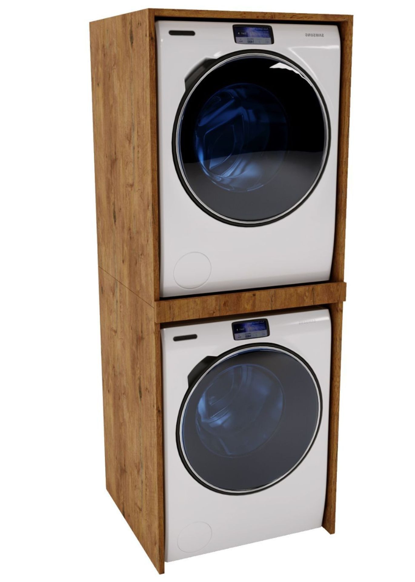 HERGESTELLT IN DER EU: Dieser Waschturm für Waschmaschine und Trockner wird in der EU hergestellt und zeichnet sich durch höchste Qualität aus. Er fügt sich problemlos in bestehende Möbel ein oder kann als Grundlage für ein neues Möbelstück dienen. Dank seiner speziellen Konstruktion reduziert der Schrank Geräusche von der Waschmaschine oder dem Wäschetrockner, wodurch eine angenehme und geräuscharme Nutzung gewährleistet ist.