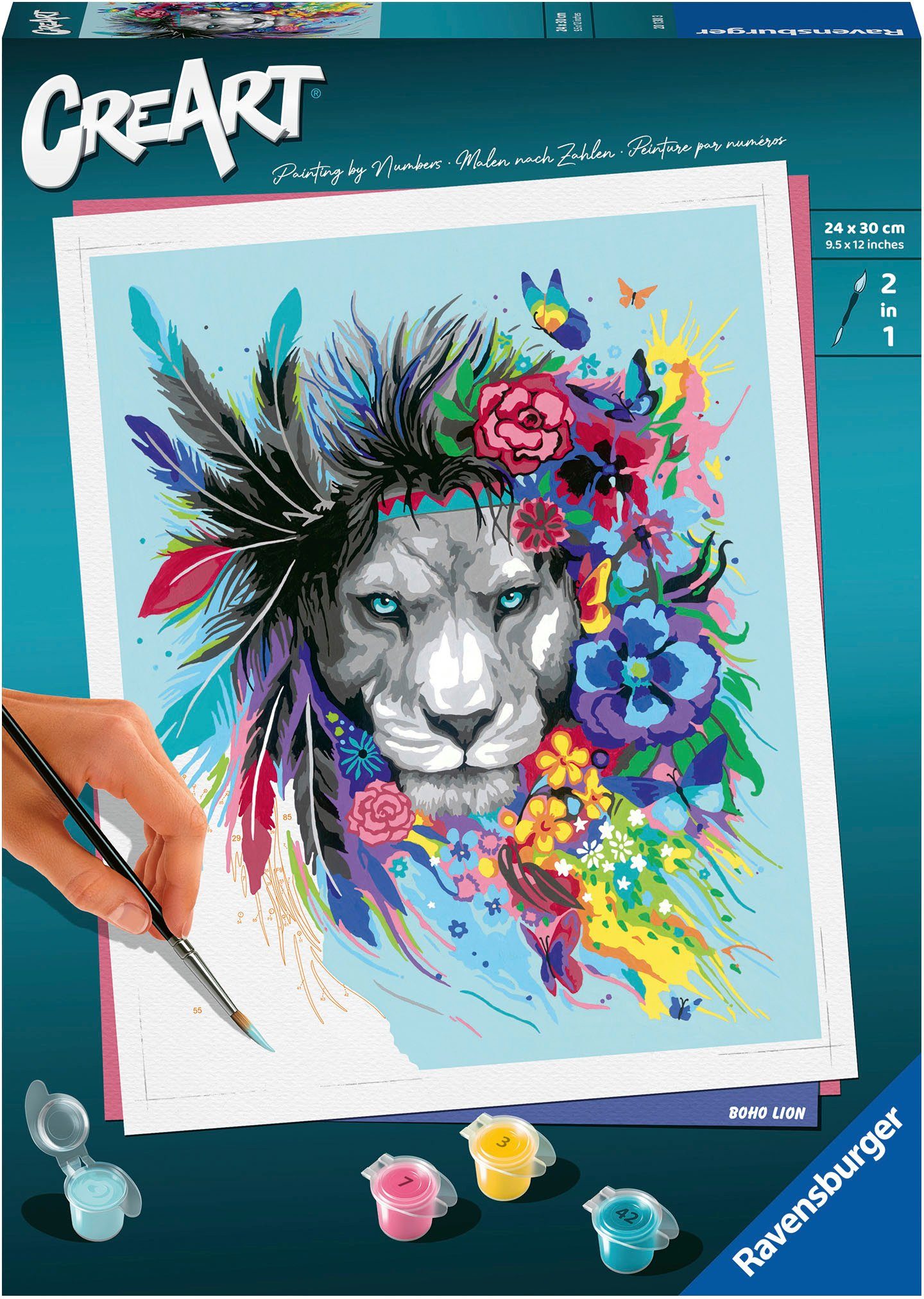 Lieferumfang | Maltafel im Format 24 x 30 cm, Acrylfarben auf Wasserbasis in wiederverschließbaren Näpfchen, Doppelpinsel, Farbpalette, Vorlageblatt, Glanzlack und Anleitung |