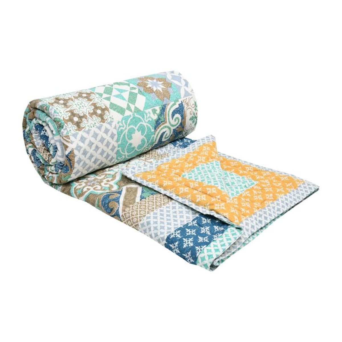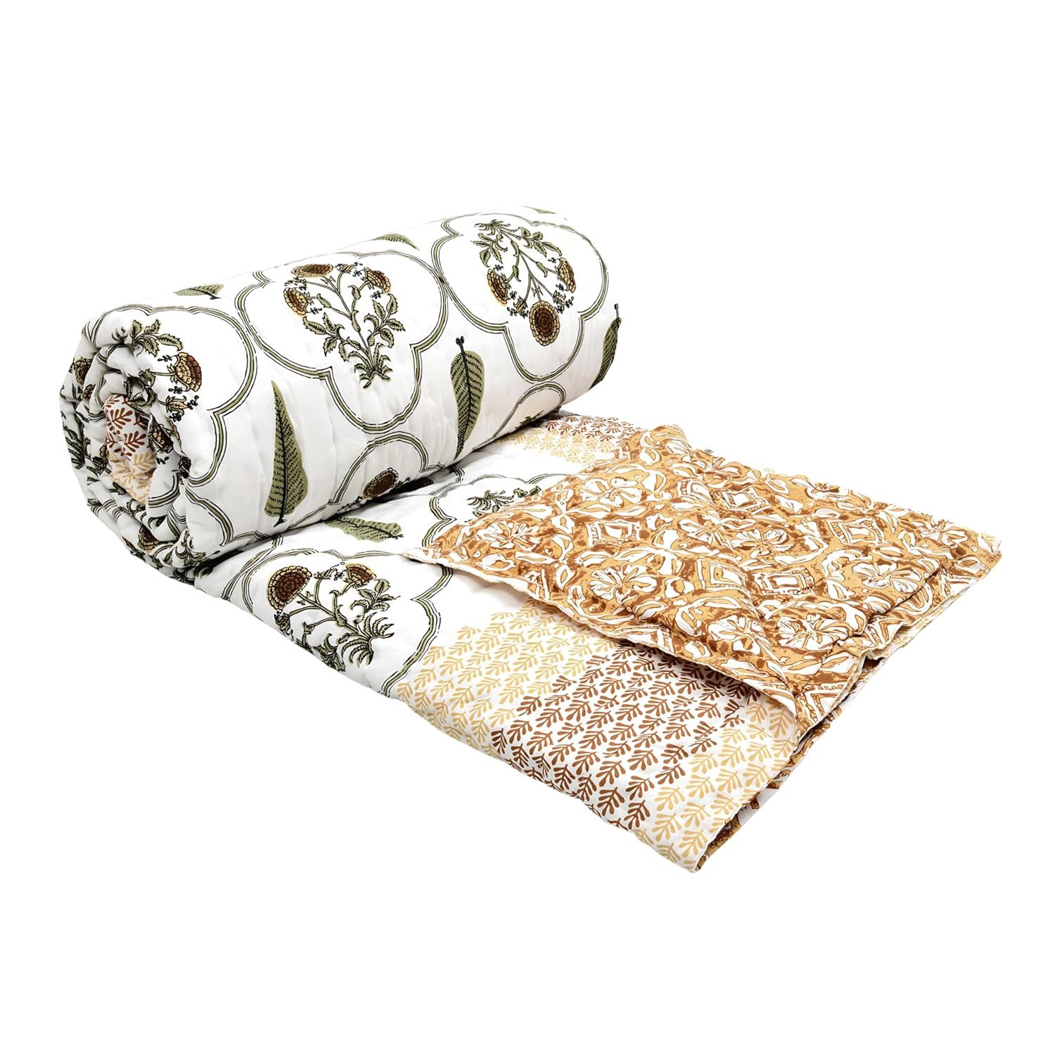 Inspiriert von jahrhundertealten Blockdruck- und Textiltraditionen, hergestellt von Kunsthandwerkern aus Jaipur. Da es sich um ein handgefertigtes Produkt handelt, kann es zu Abweichungen in Farbe und Design kommen, wodurch jedes Stück zu einem Unikat wird und jede Decke ein individuelles Kunstwerk ist. Unsere Produkte werden mehrmals gewaschen und in der Sonne getrocknet, um eine einzigartige Weichheit und ein natürliches Gefühl zu erzielen. Zu jedem Anlass oder für eine Party sieht Ihr Zuhause wunderschön aus und Sie werden für Ihre Einrichtung und Ihr Dekorationsgeschick bewundert. Für die Herstellung wird Voile-Baumwolle verwendet, eine weiche Steppdecke mit gut verarbeiteten Kanten, die an den Seiten vernäht ist. Sie hat wunderschöne und einzigartige Designs.