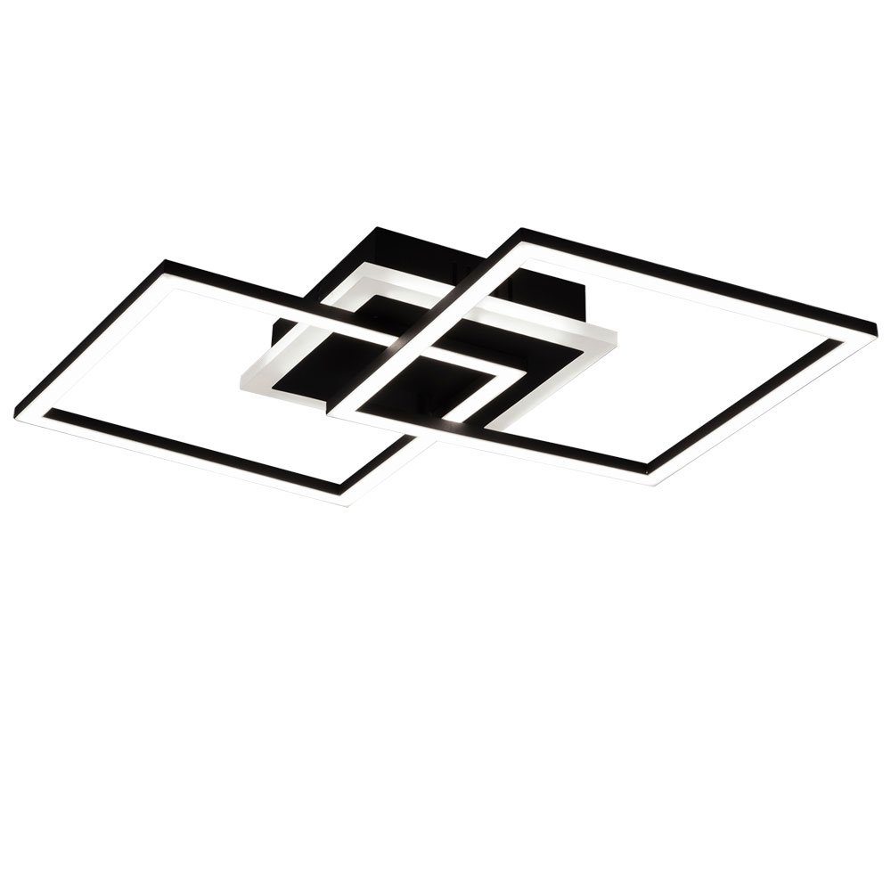 Die Deckenleuchte hat eine Breite von 58 cm und eine Tiefe von 35 cm. Dank der Farbgestaltung in Schwarz matt lässt sich die Leuchte mit vielen Einrichtungsstilen kombinieren.