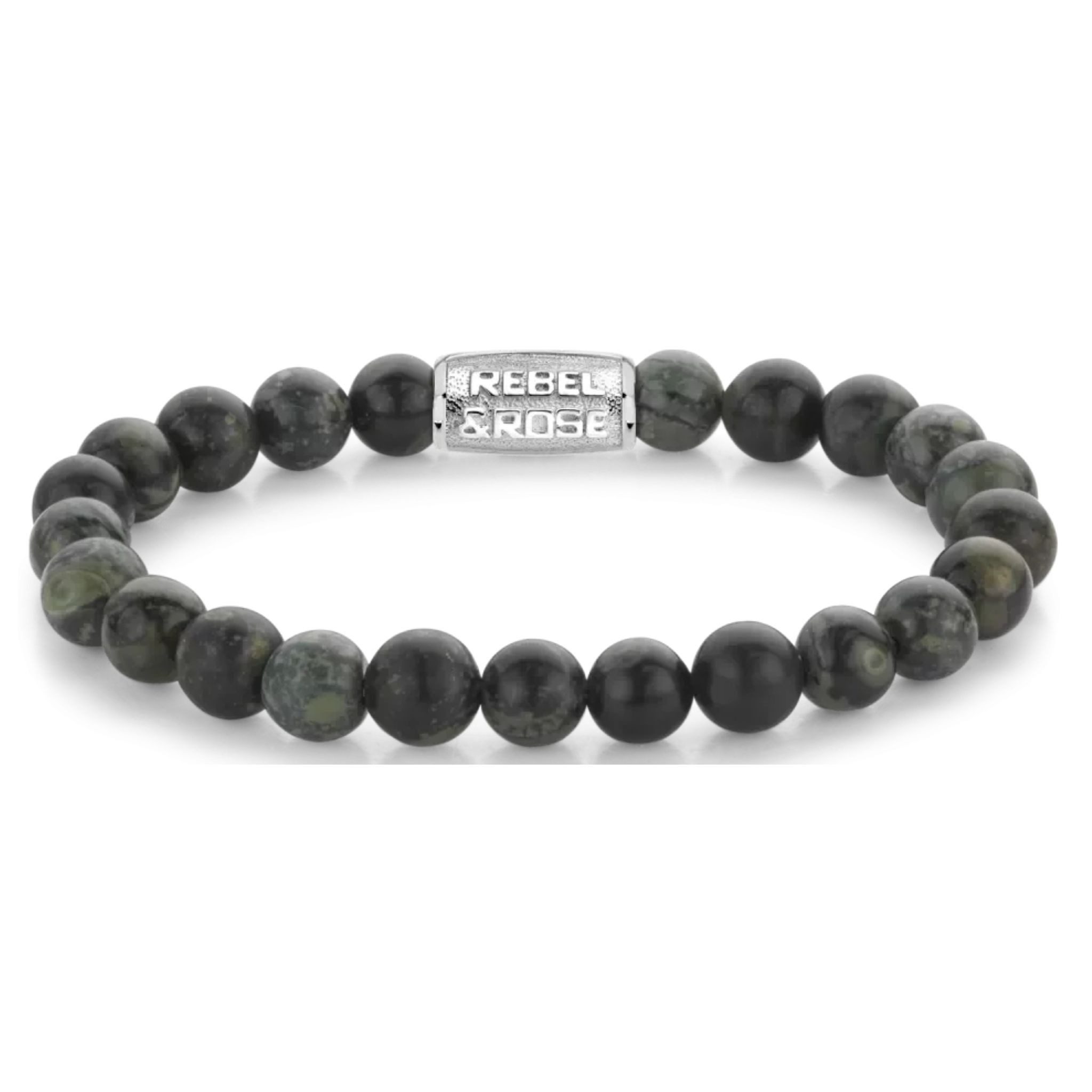 Das Rebel&Rose Armband RR-80107-S-L ist ein markantes Herrenaccessoire, das Natürlichkeit und maskuline Eleganz harmonisch verbindet. Gefertigt aus 8 mm großen Rhyolithsteinen in satten Dunkelgrüntönen, beeindruckt es durch seine lebendige Maserung und die einzigartige Struktur der Steine. Jedes Schmuckstück ist ein Unikat, das durch seinen individuellen Charakter besticht. Ein stabiler Metallverschluss sorgt für sicheren Halt und ergänzt das Design mit einer modernen, robusten Note.