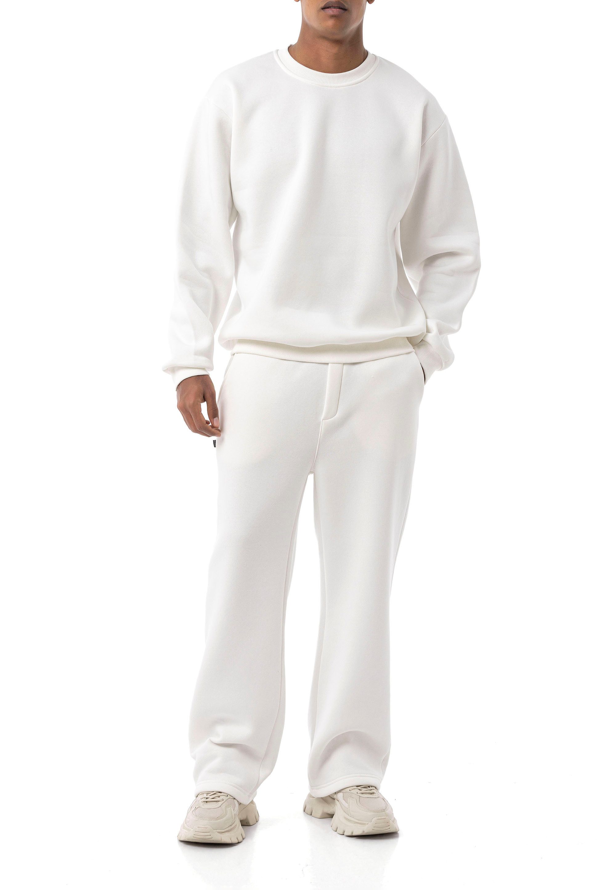 Komplett-Look in Sekunden: zweiteiliges Sweat-Set aus Rundhals-Pullover und Jogginghose; weich, formstabil und alltagstauglich – vom Homeoffice bis City der mühelose Style-Booster.