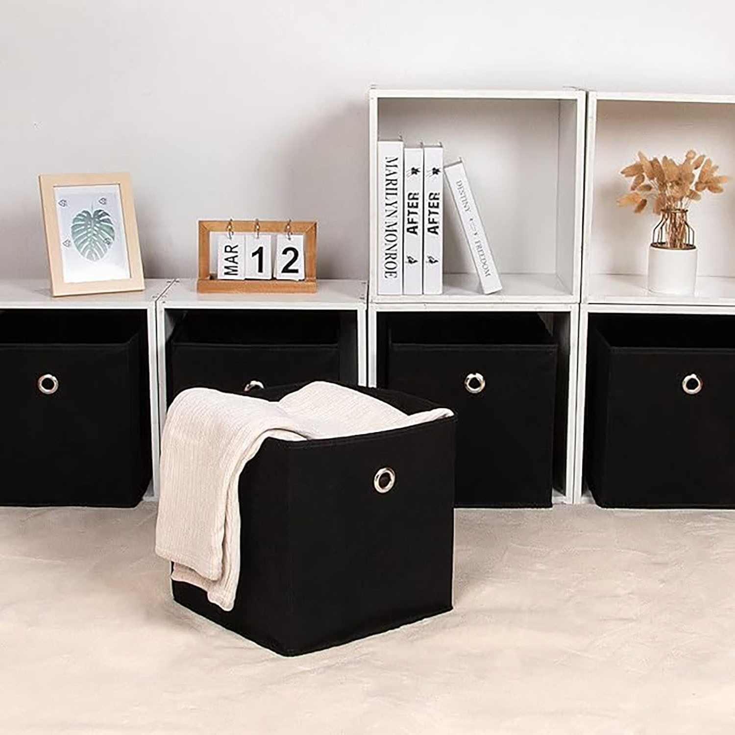 Die Faltboxen sind wahre Allrounder: Nutzen Sie sie im Schlafzimmer für Textilien, im Wohnzimmer für Bücher oder Decken, im Kinderzimmer für Spielzeug oder im Büro für Schreibwaren.