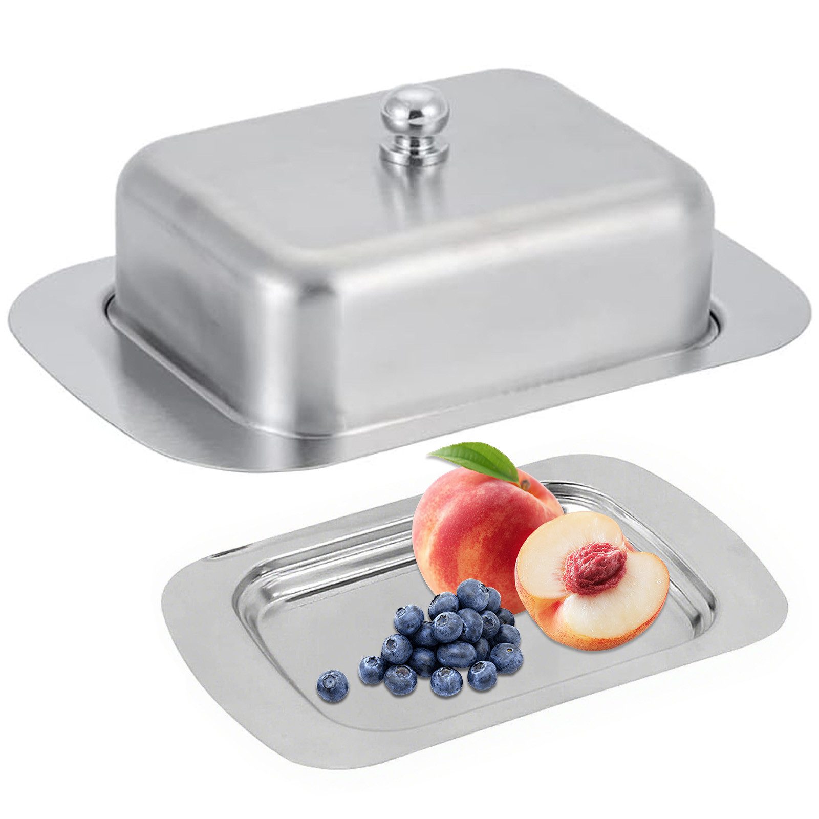 Glatte Kanten und modernes Edelstahl-Finish verleihen der Butterdose eine stilvolle Optik für jede Küche oder Tischdekoration.
