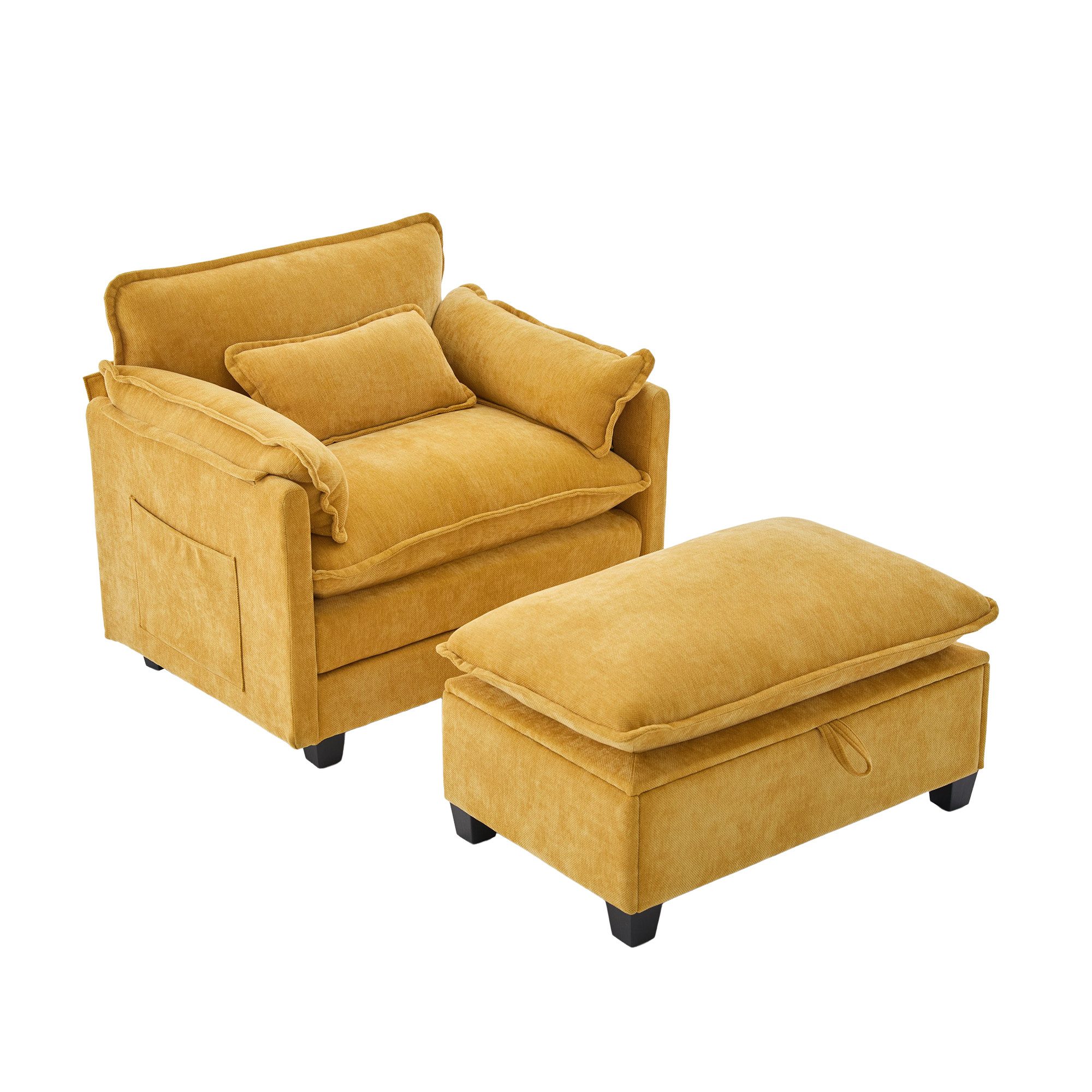 Lieferumfang: 1x Einzelsessel, 1x Hocker mit Stauraum