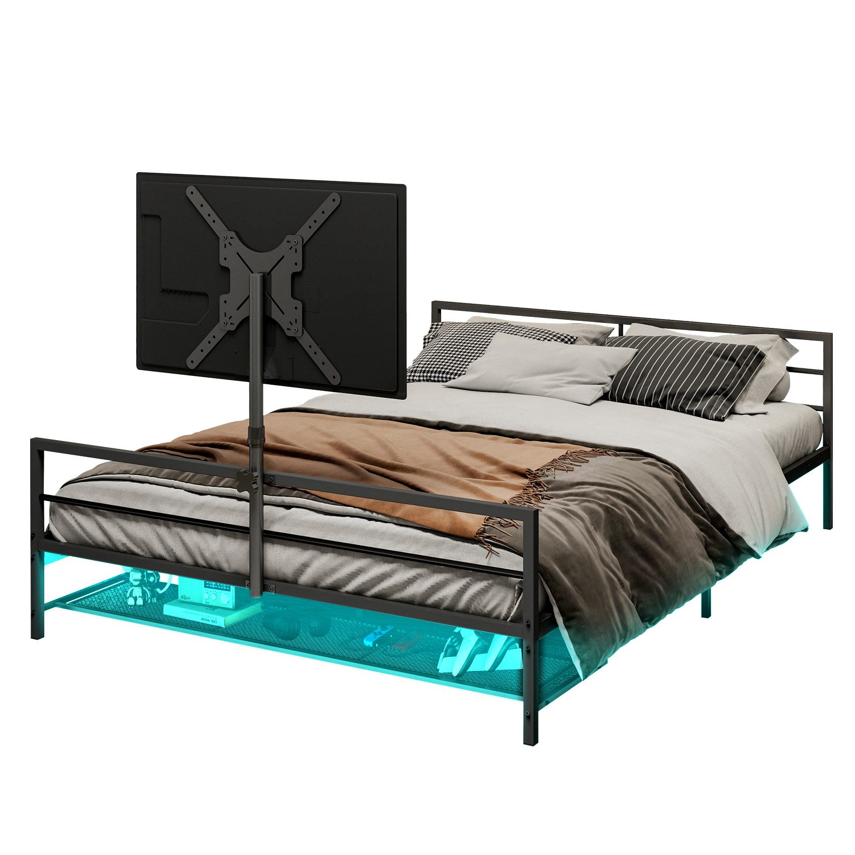 Multifunktionale Monitorhalterung für ein verbessertes Gaming-Erlebnis: Die spezielle Metallhalterung am Ende des Bettrahmens ermöglicht die einfache Installation eines Monitors und lässt sich in verschiedene Winkel verstellen. So können Sie das Bett nicht nur für das Gaming-Erlebnis nutzen, sondern auch als funktionalen Arbeitsplatz für Multimediageräte oder als Platz für Ihren Monitor für Home-Office oder Streaming-Anwendungen.