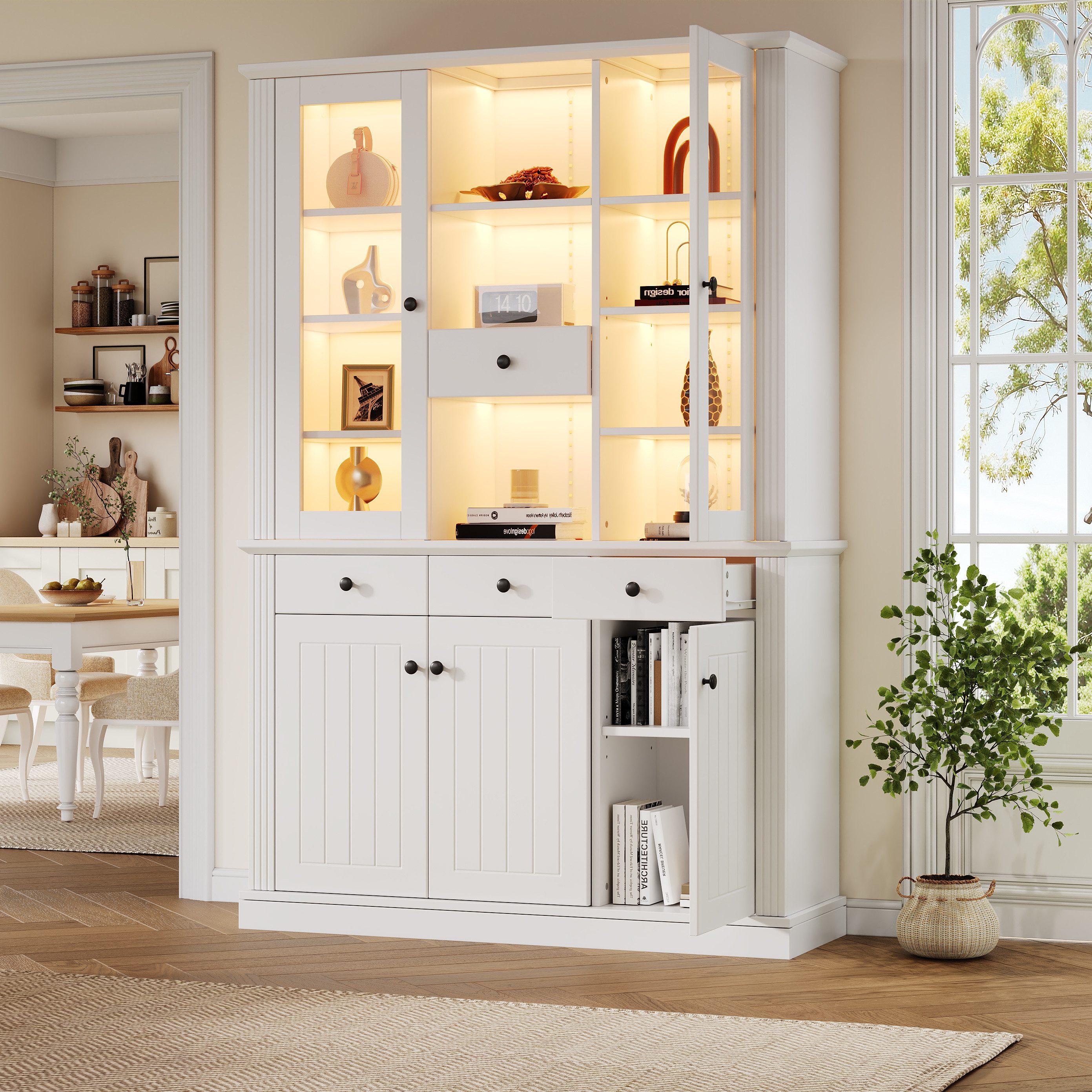 Die Vitrine von REDOM kombiniert praktische Aufbewahrung mit modernem Design. Mit insgesamt 21 Lagerbereichen und einer mehrschichtigen Struktur sorgt sie für eine ausgezeichnete Platzaufteilung, die den Stauraumbedarf für Wohnzimmer, Esszimmer und andere Räume präzise abdeckt. Die verstellbaren Trennwände der Schranktüren bieten Platz für alles, von großen Tassen bis hin zu kleinen Gegenständen, und ermöglichen eine flexible Lagerung.