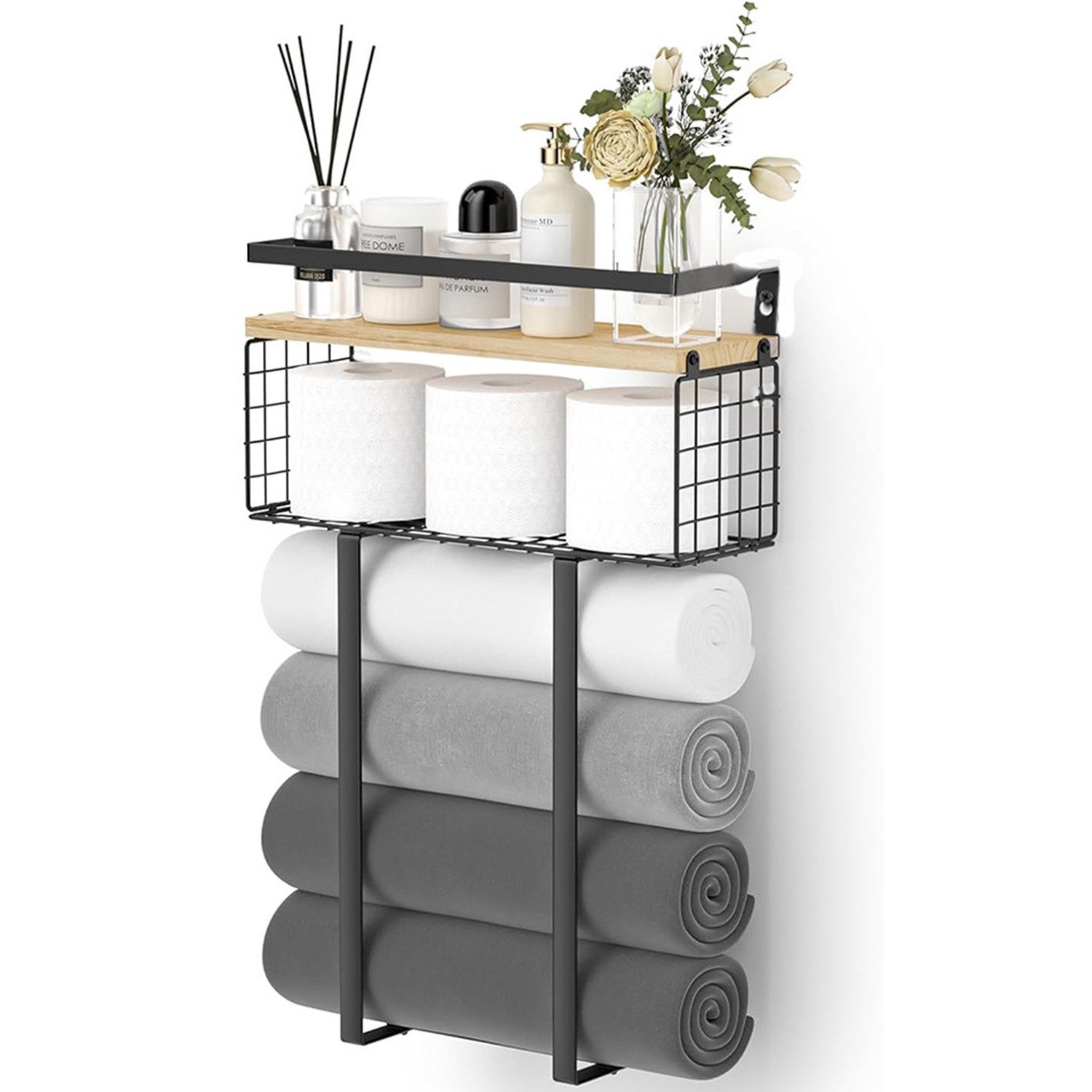 Dreistufiges Wandregal · Stilvoll & Praktisch – Ihr vielseitiger Handtuchhalter mit Stauraum