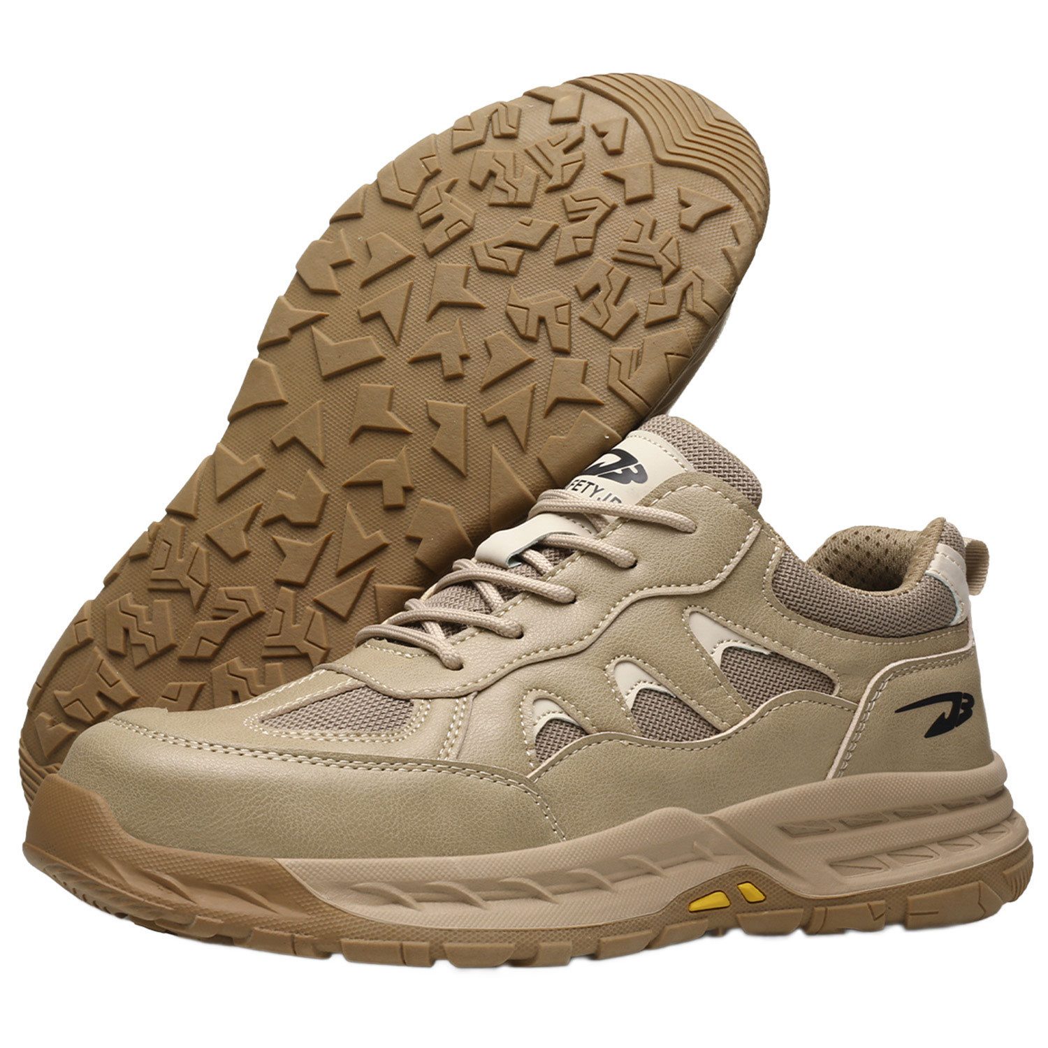 Die Arbeitsschuhe bestehen aus einer starken und verschleißfesten Gummilaufsohle, die eine hervorragende Abriebfestigkeit und Rutschfestigkeit aufweist, guten Halt bietet, die Dämpfung effektiv reduziert und für ausreichende Reibung sorgt, die Rutschgefahr in rutschigen Umgebungen verringert und die Gehsicherheit verbessert.