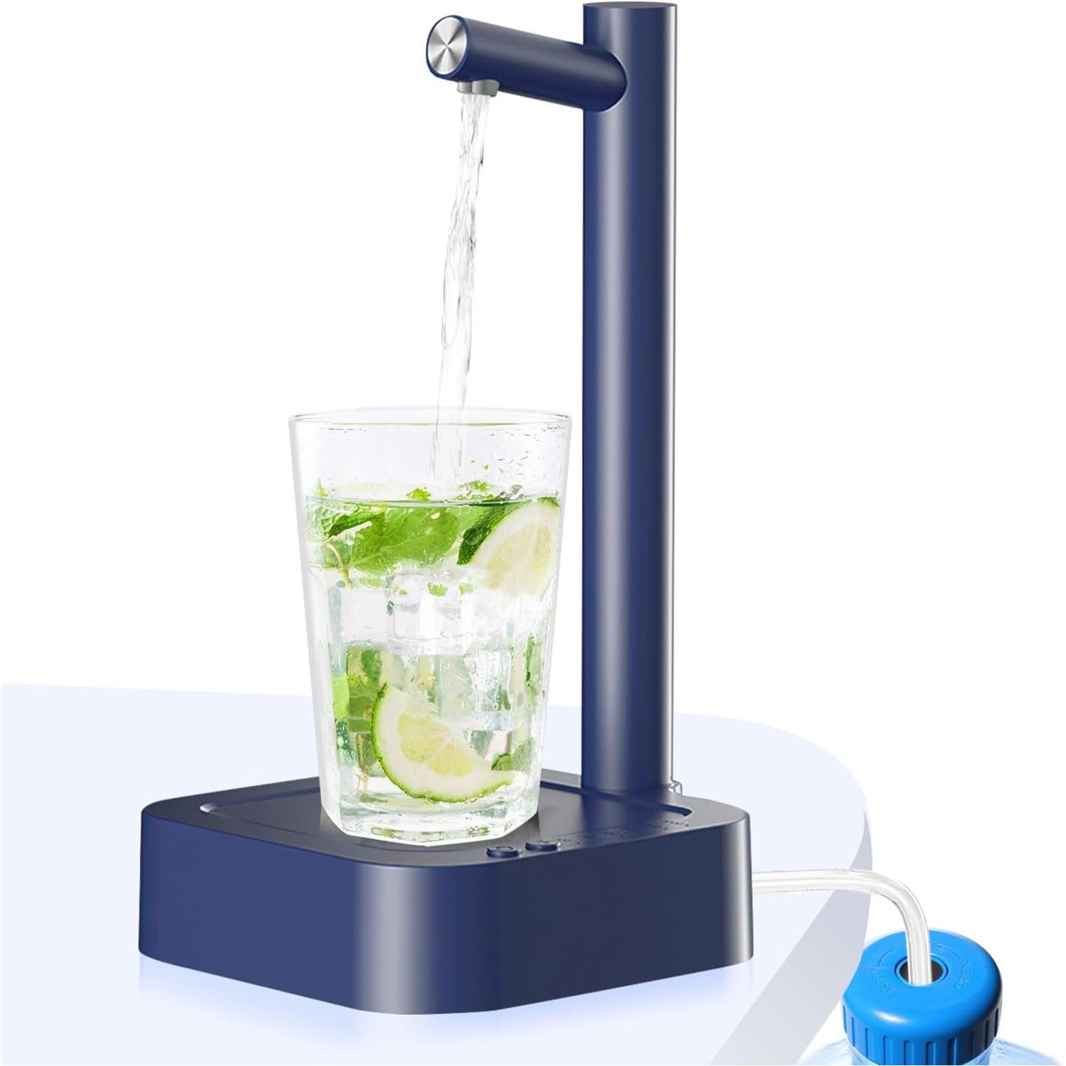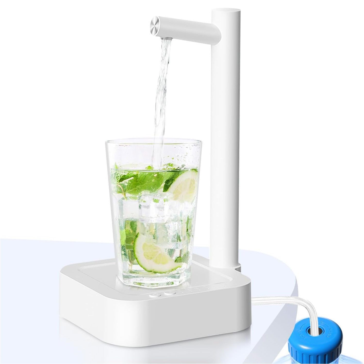 Dieser Wasserspender nimmt ein Knopfdesign an, das einfach zu bedienen ist, ziehen Sie den Gummischlauch zum abgefüllten Wasser, berühren Sie den Knopf, die intelligente Wasserpumpe gibt automatisch Wasser aus, Sie müssen den Eimer nicht gießen oder sich auf den traditionellen Wasserspender verlassen, Sie können jederzeit frisches und sauberes Trinkwasser genießen, einfach und arbeitssparend, dieses Design ist sehr gut geeignet für ältere Menschen, schwangere Frauen oder Menschen mit eingeschränkter Mobilität.