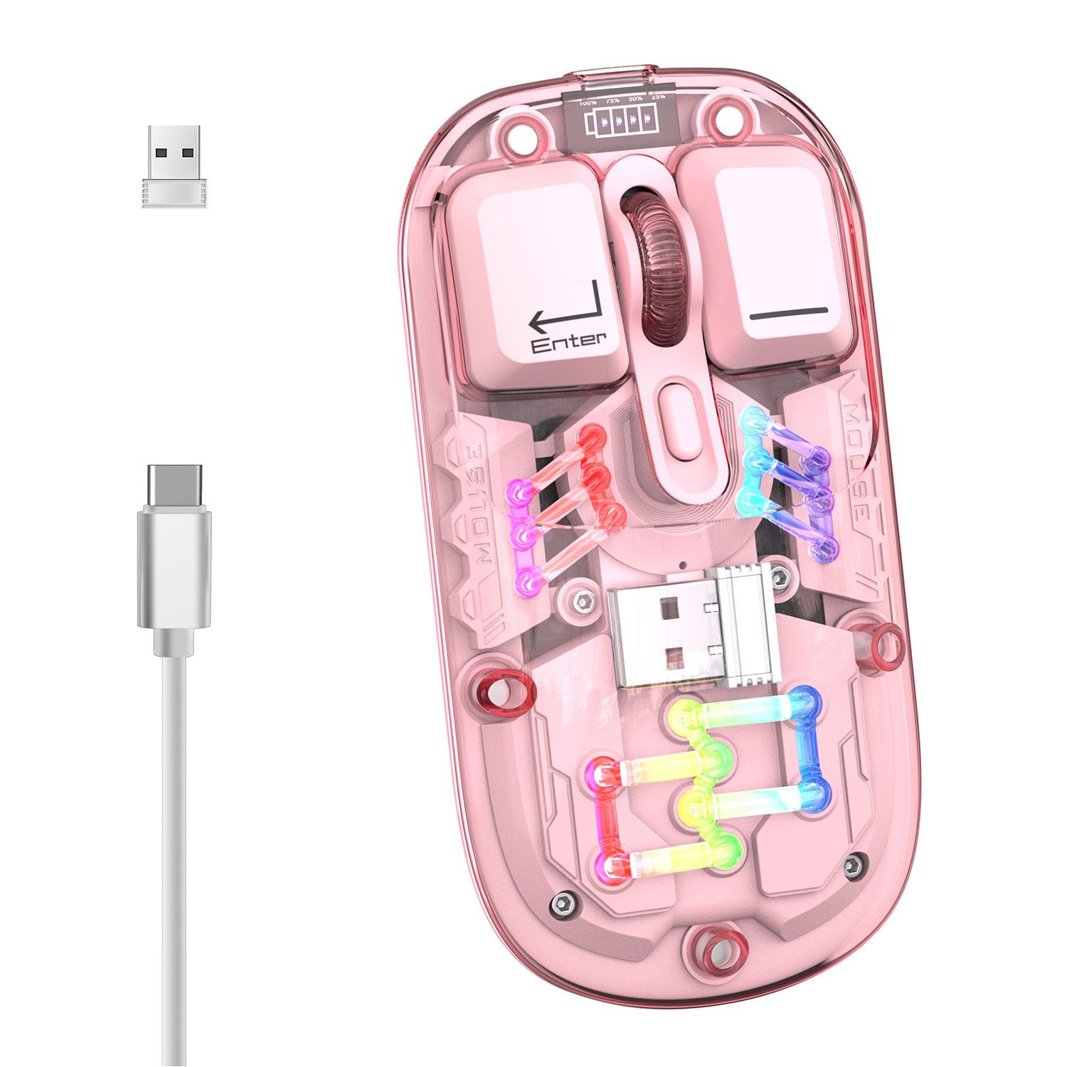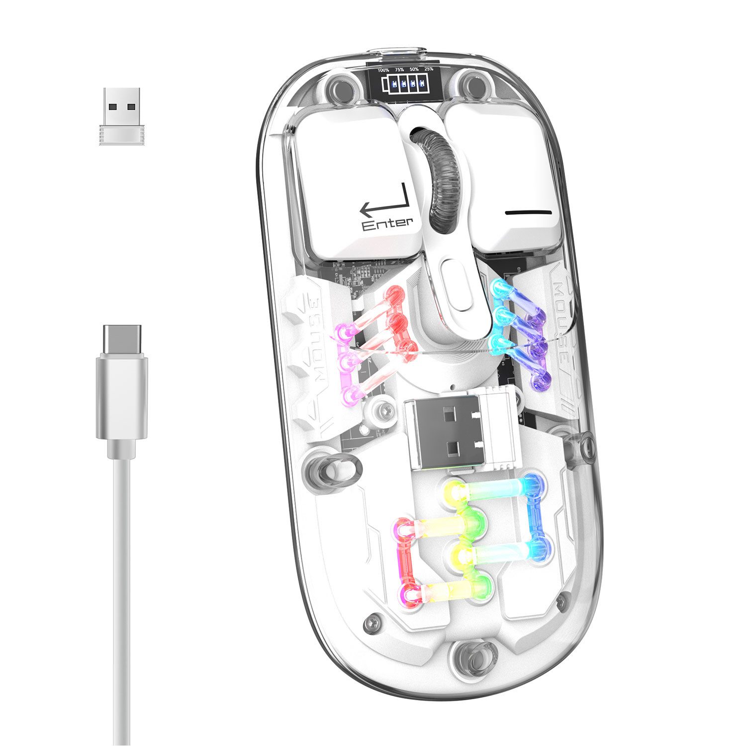 Kabellose Bluetooth-Maus, Transparente Mechanische BT + 2,4-G-Dualmodus-Maus mit Magnetischer oberer Abdeckung, wiederaufladbare RGB-Gaming-Maus mit Hintergrundbeleuchtung für Gaming/Esports/Desktop/Laptops/Tablets