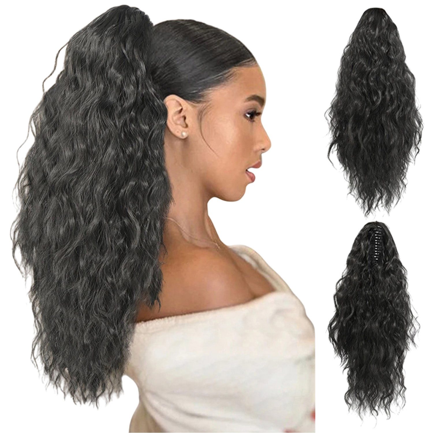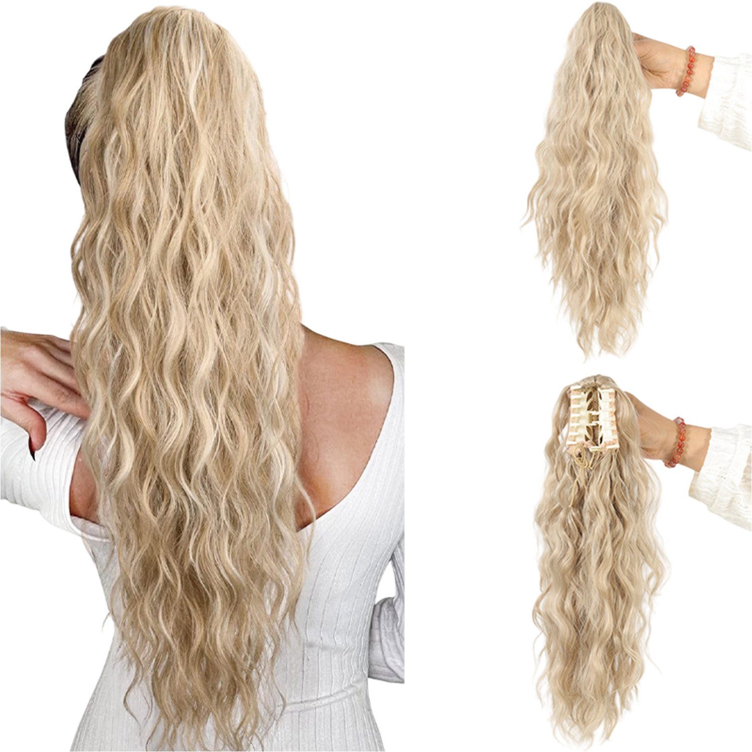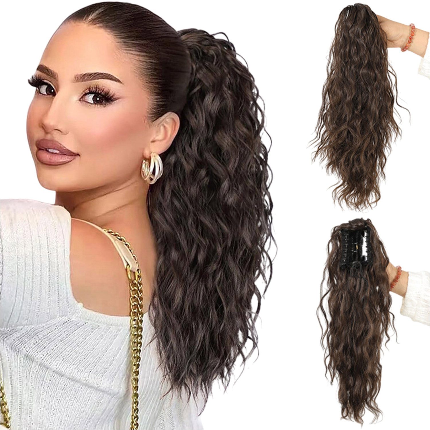 Pferdeschwanz mit Klammer, Lange Wellig Lockig Haarextension Synthetik Zopf Haarverlängerung Claw Clip in Haarteil Ponytail für Damen 45cm