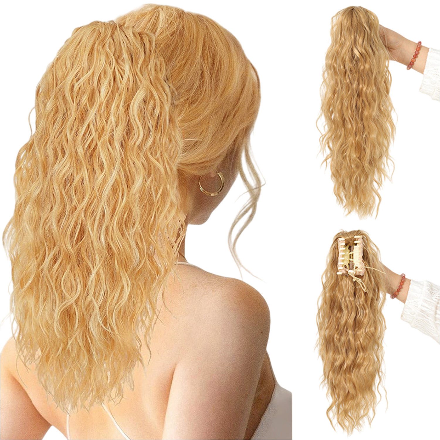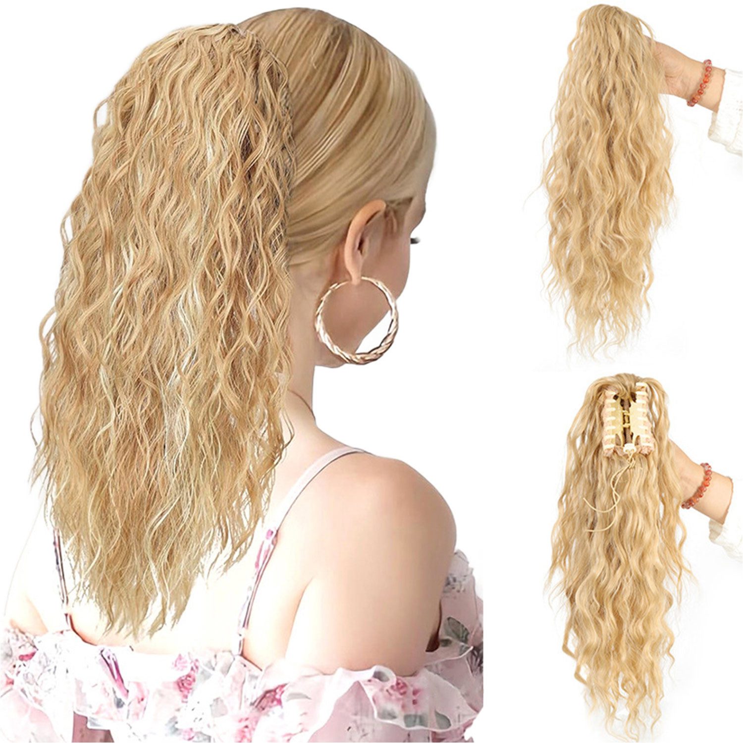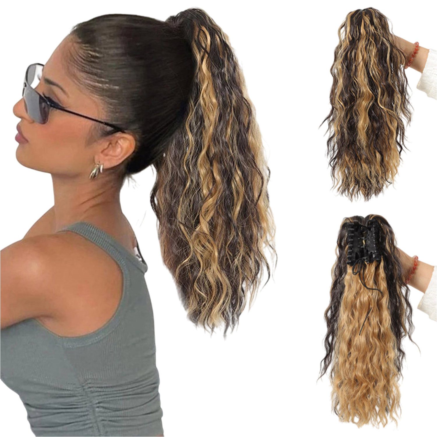 Pferdeschwanz mit Klammer, Lange Wellig Lockig Haarextension Synthetik Zopf Haarverlängerung Claw Clip in Haarteil Ponytail für Damen 45cm