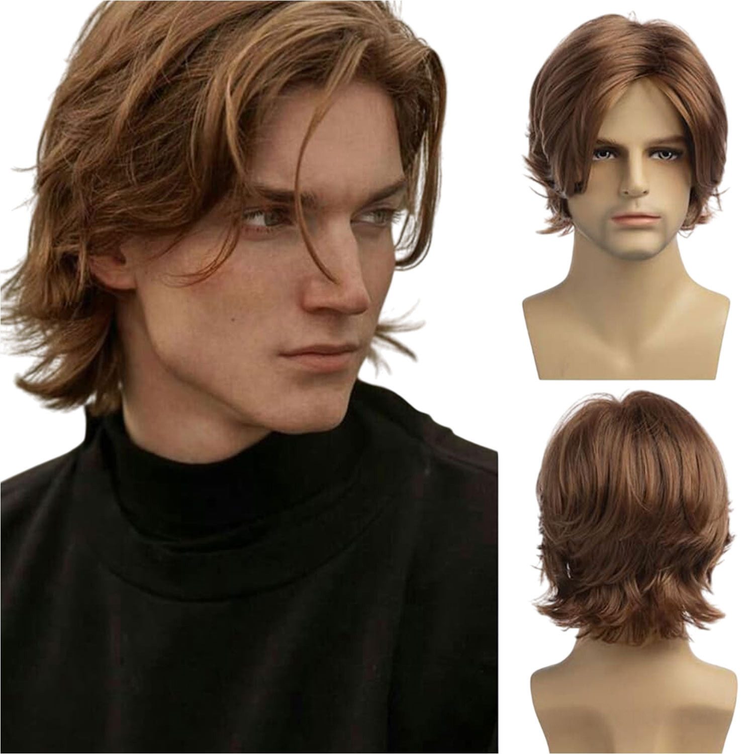 Braune Perücke. Herren kurze Perücke Synthetische Hochtemperaturfaser Kurze Bob-Perücke mit gewellter Lace-Front synthetische Perücken für Halloween, Cosplay