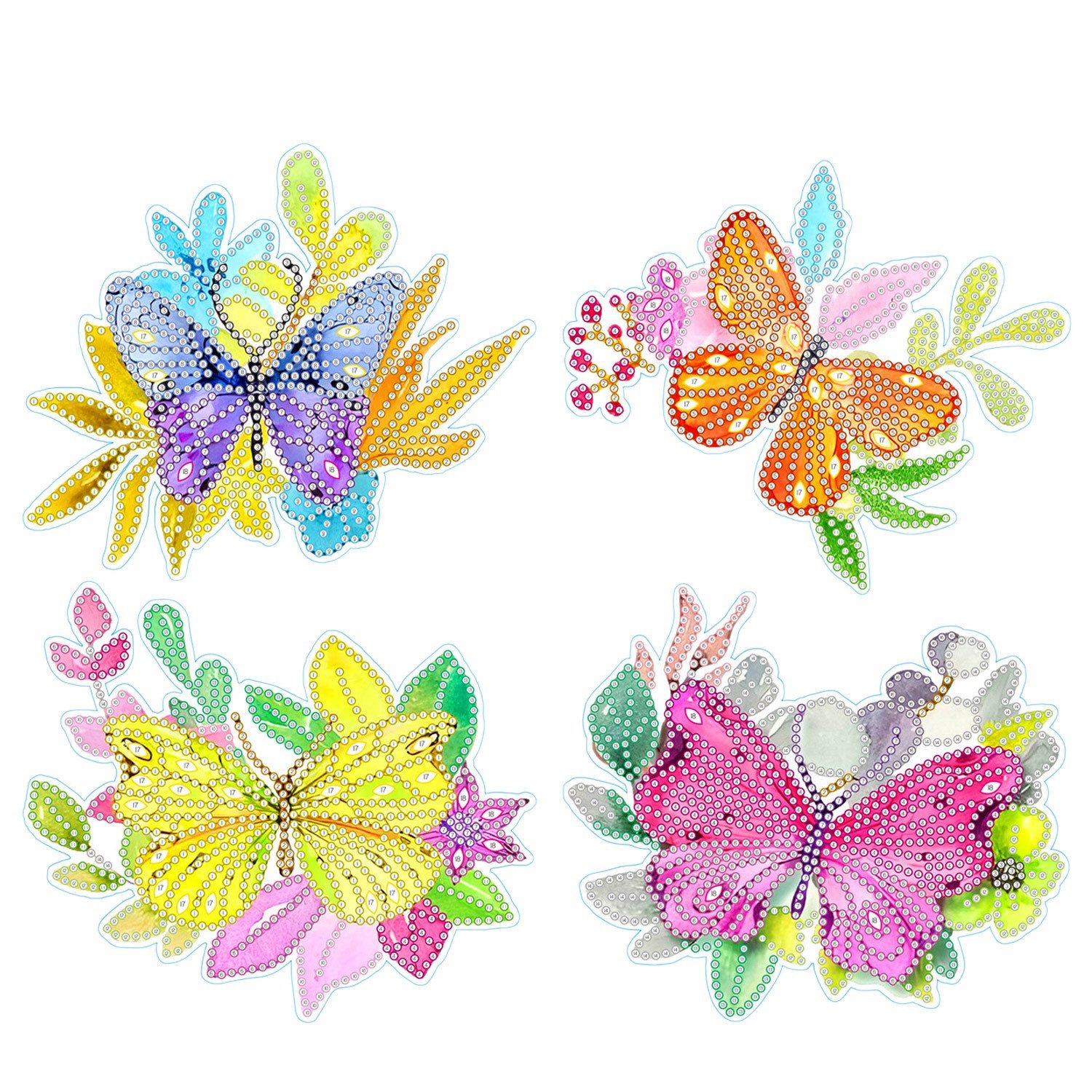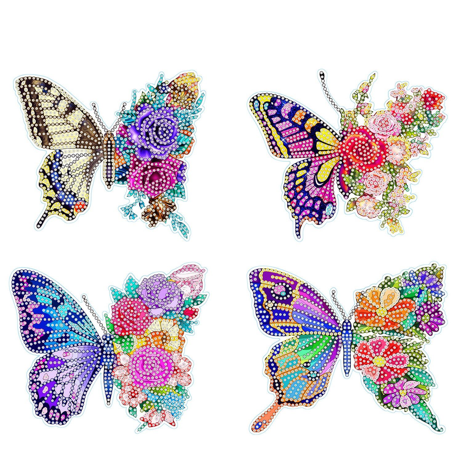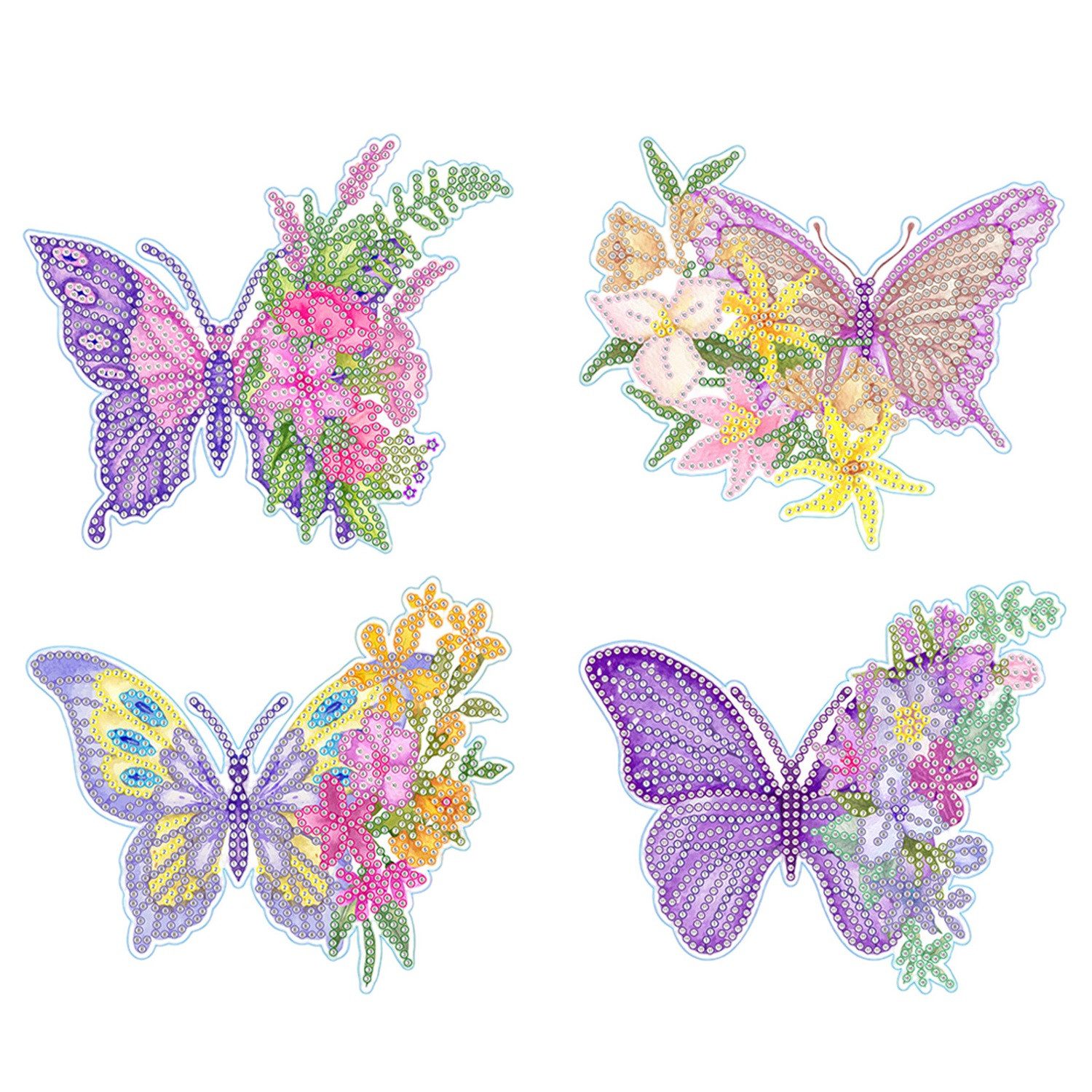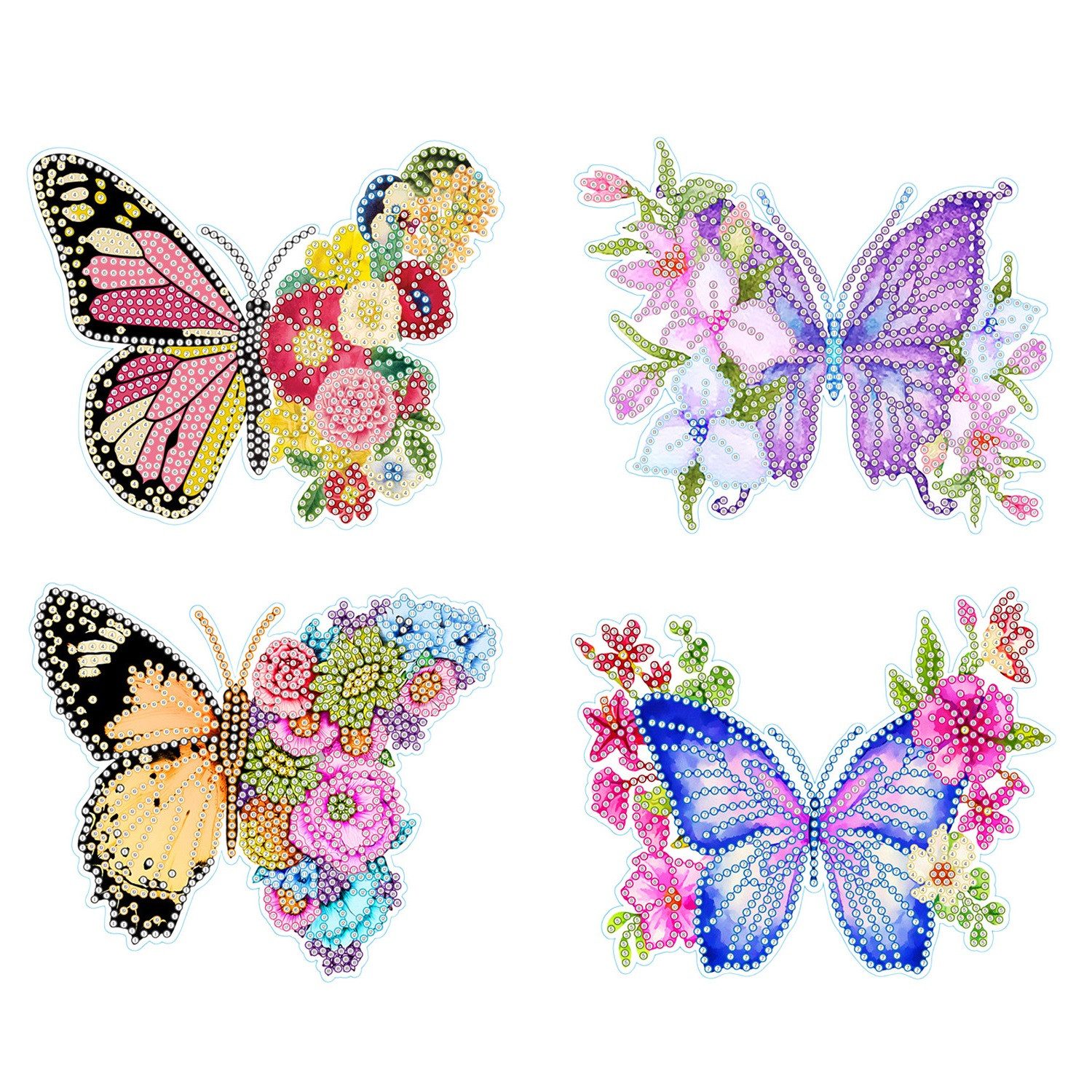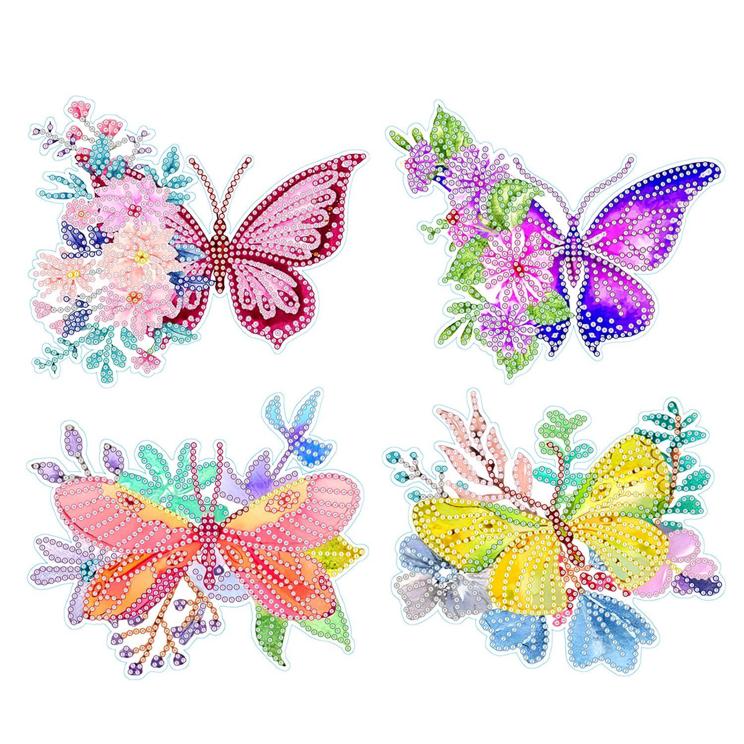 Schmetterling Diamond Painting Sticker Set für Kinder, 17 x 14.5cm, 5D Diamant Malerei Aufkleber Kit,Blumen Diamant Painting Bilder Kinder Sticker,Junge Mädchen Anfänger,
