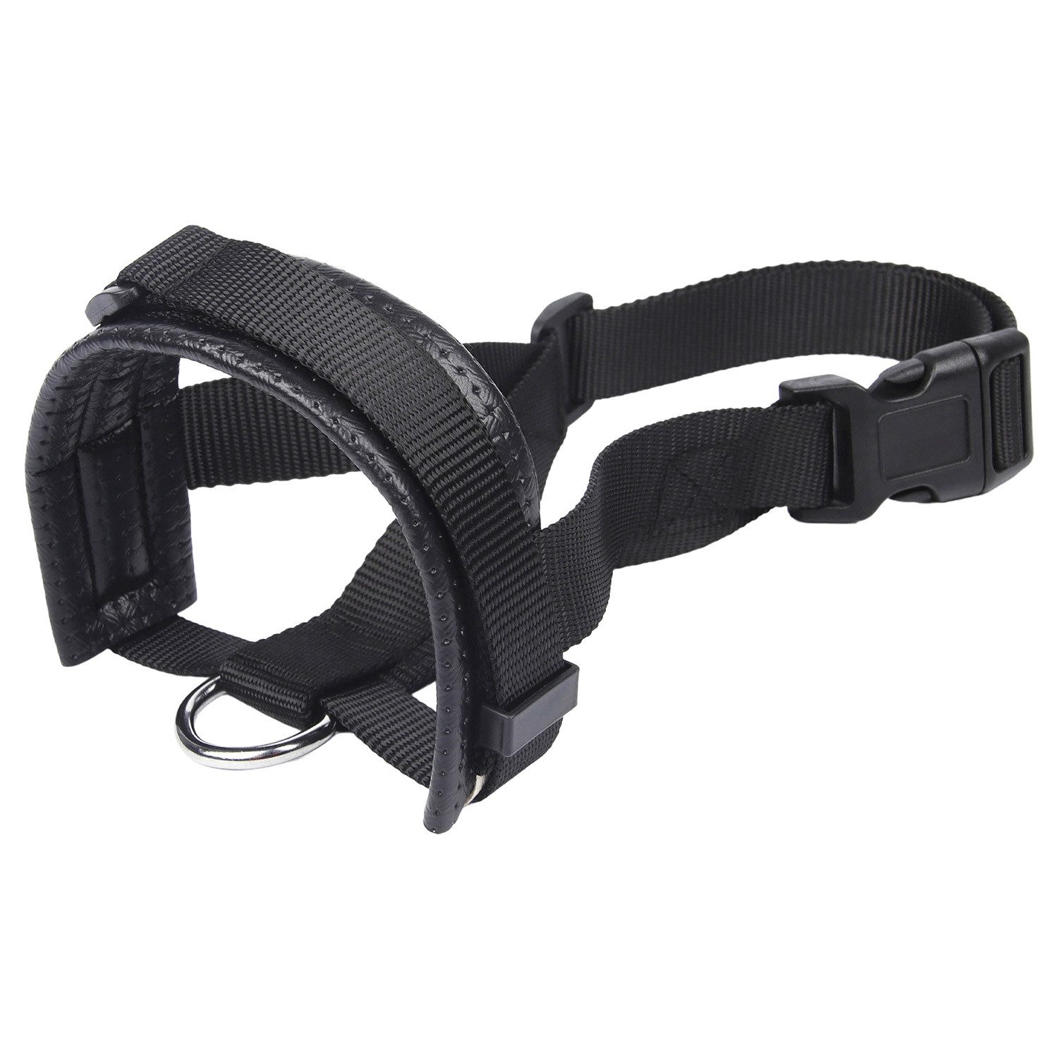 Hund Maulkorb mit Kopfriemen Hunde Maulkorb Weiche Gepolstert Kein Reiben mehr Hunde Maulkörb Verstellbare Schlaufe Hundemaulkorb Maulkörb Gegen Beißen Maulkorb für Große Hunde, Schwarz