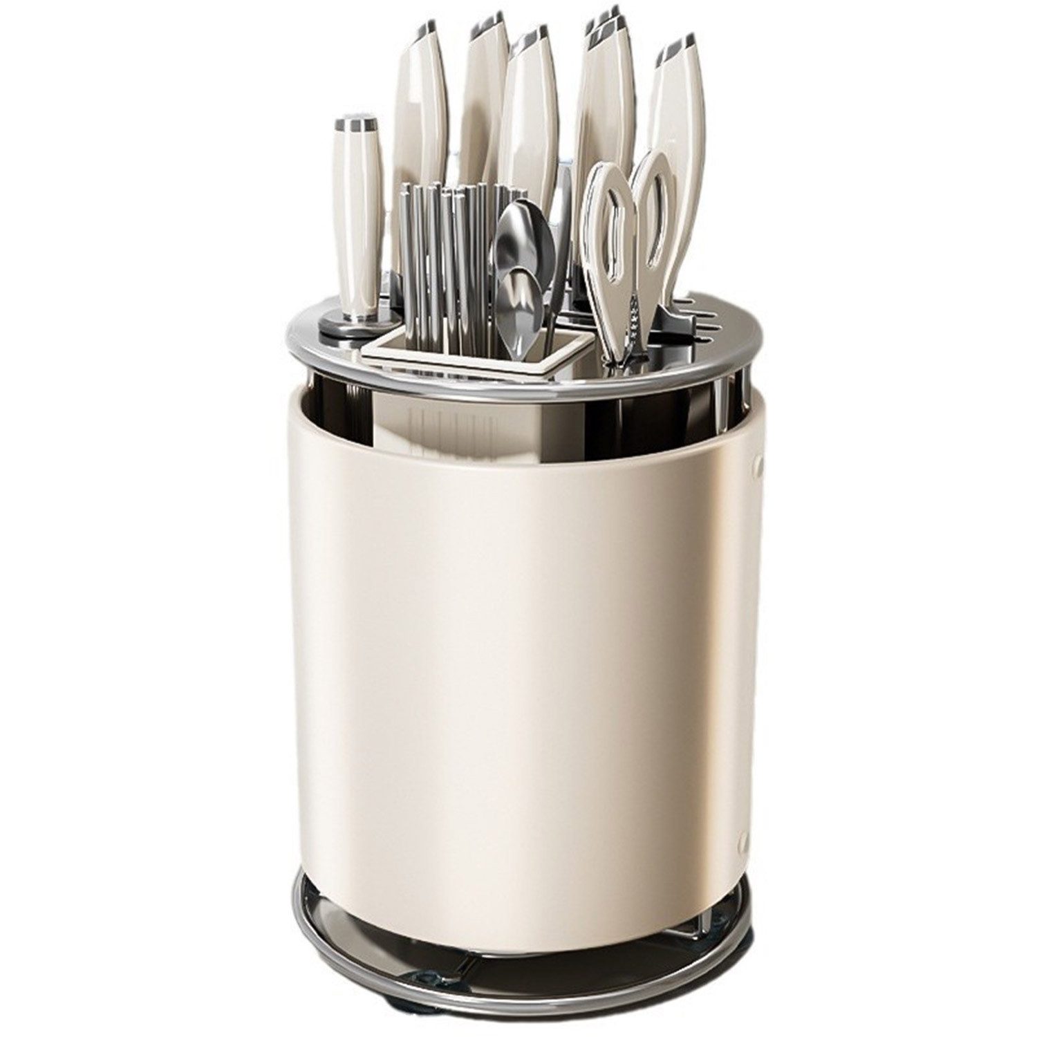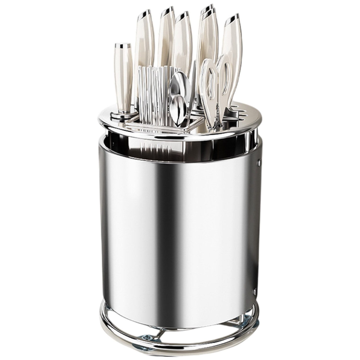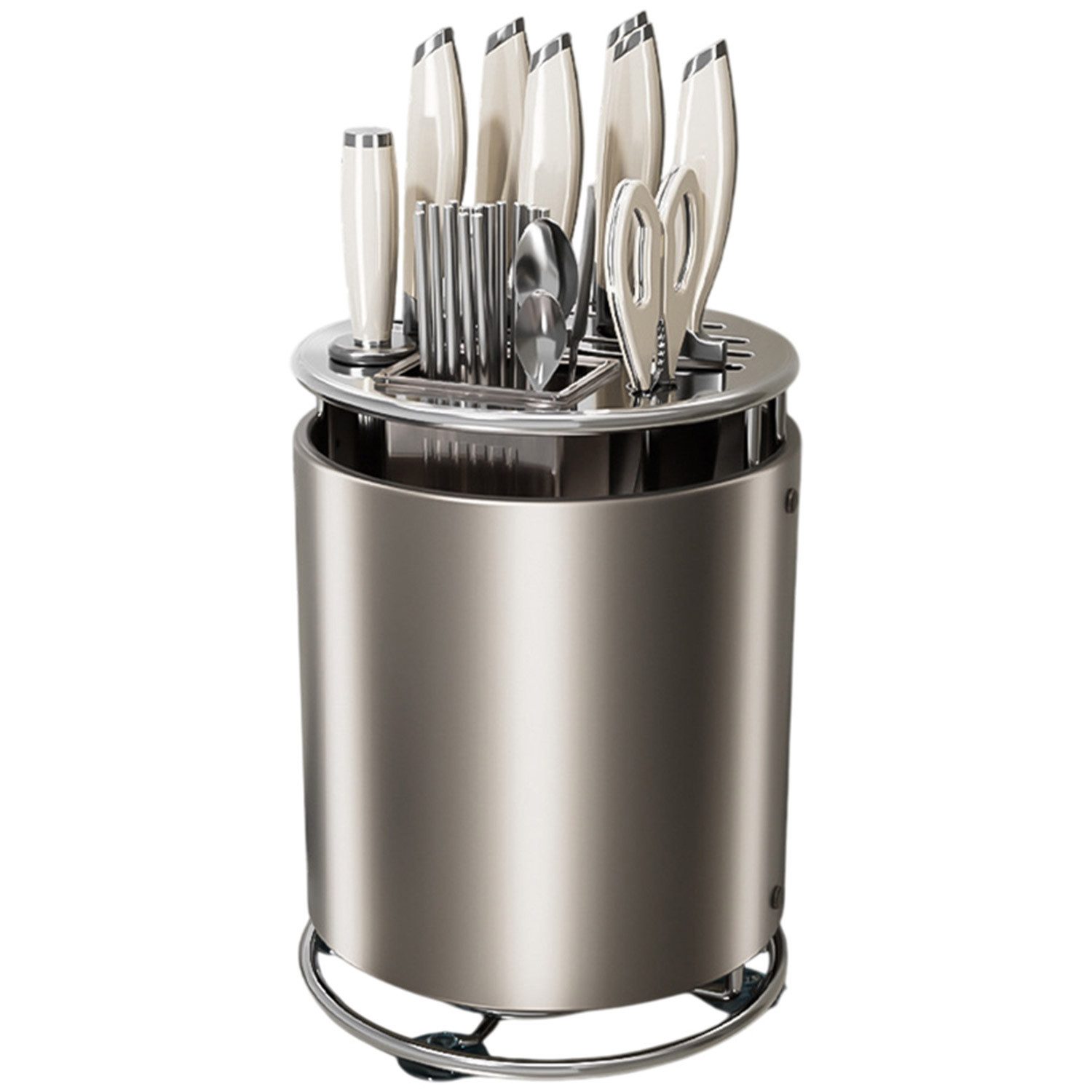 Der Messerhalter aus Edelstahl verfügt über eine praktische 360°-Drehfunktion, eine exklusive Trennwand, Essstäbchen und Löffel, alle Messer können frei gedreht werden. Drehen Sie einfach sanft und Sie können problemlos jedes Messer nehmen, das Sie verwenden möchten.