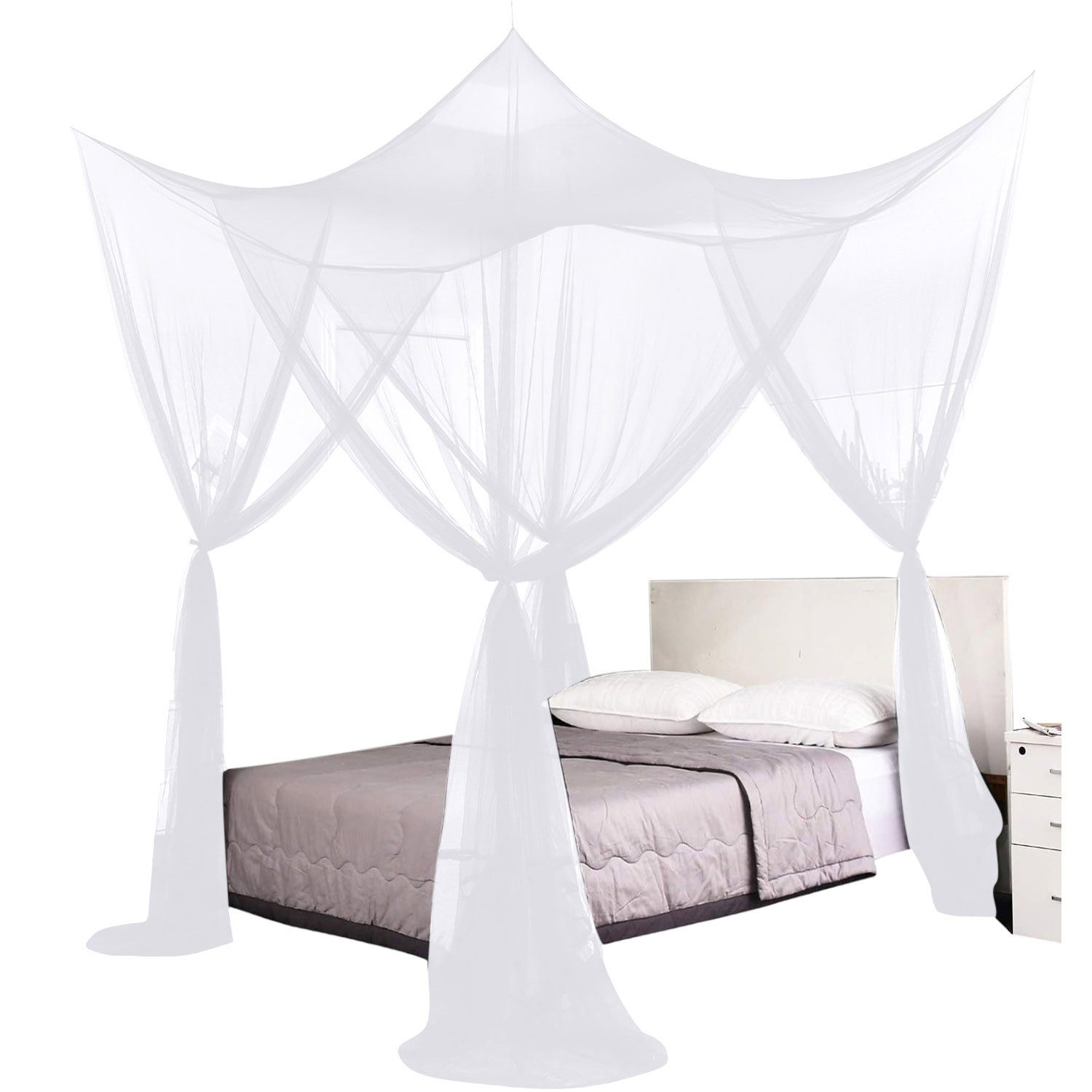 Moskitonetz Bett, 4 Eckpfosten Baldachin, Moskitonetz für alle Bettgrößen