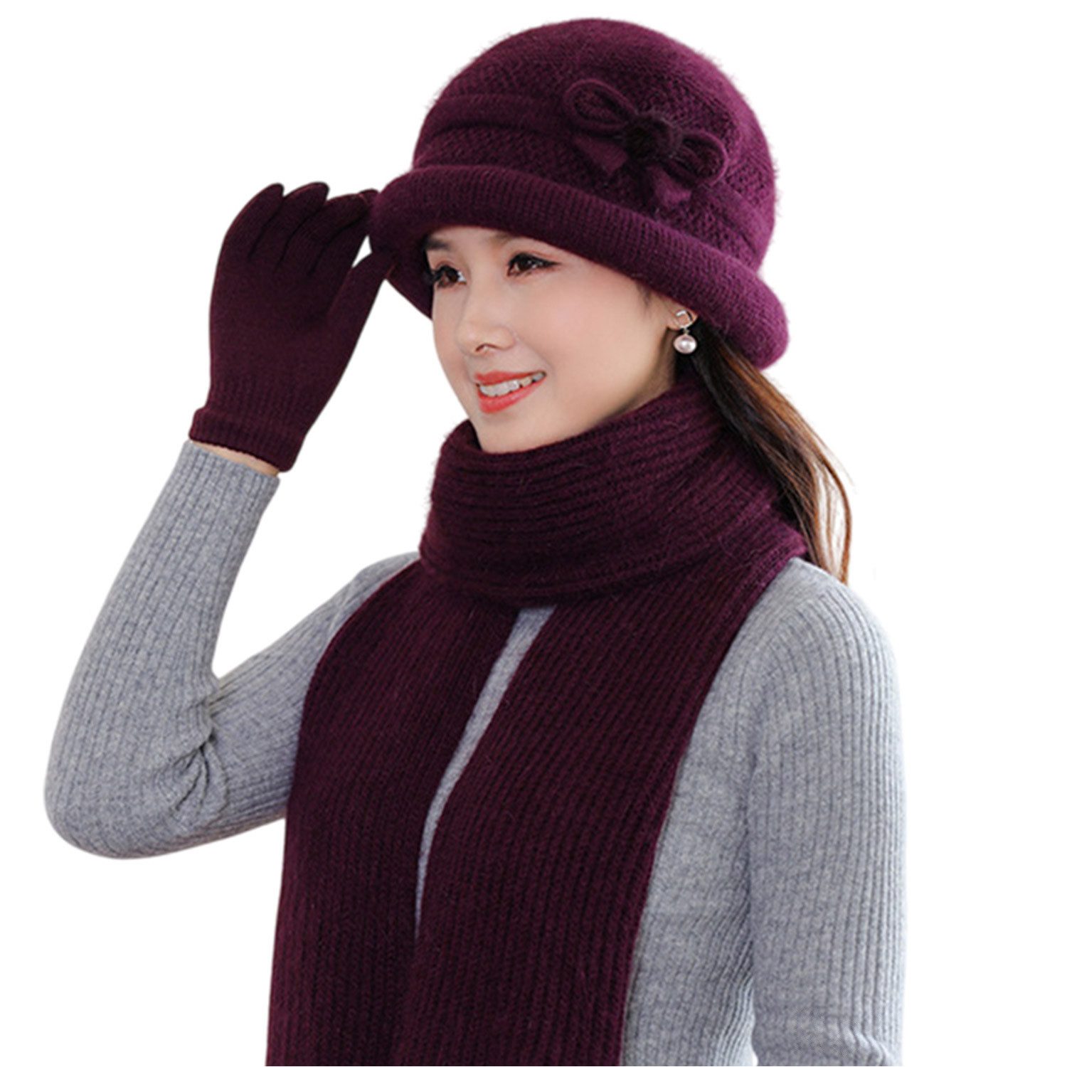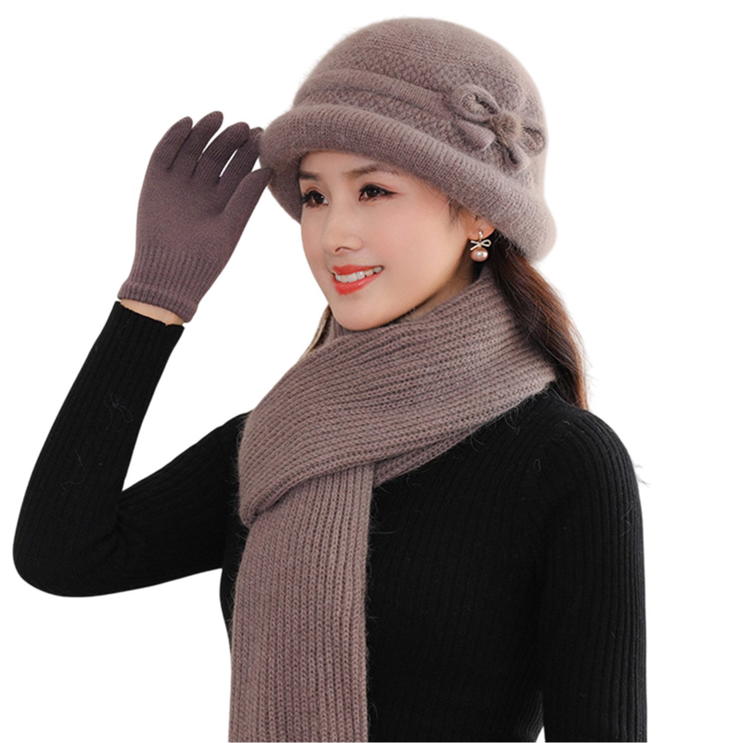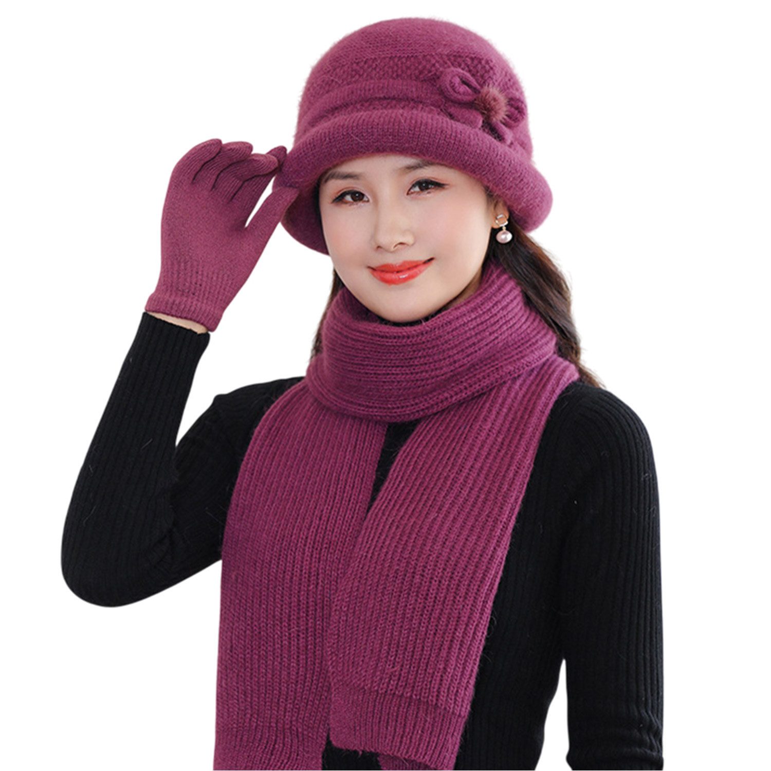 Strickmütze, Mütze, Schal & Handschuh-Sets Für Damen, Mütze Schal Set Damen, Mütze Schal Set Mädchen, Handschuhe Damen, Wintermütze Damen, Schal Damen, Glockenhut mit runder Krempe