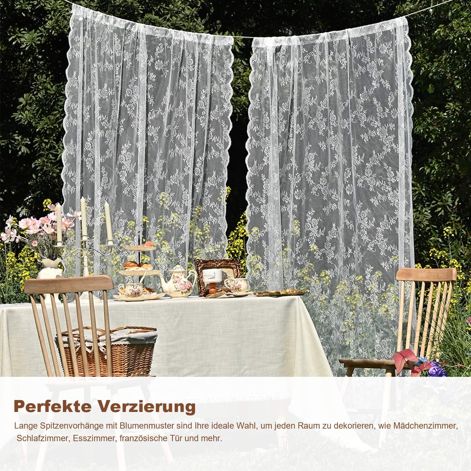 Die Vorhänge bestehen aus hochwertiger Polyester-Spitze mit weicher, hautfreundlicher Oberfläche und natürlich elegantem Fall. Sie verleihen dem Raum ein luftiges, helles Ambiente und vermitteln ein gemütliches, nostalgisches Wohlgefühl.