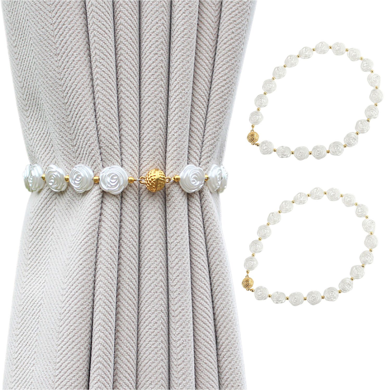 Die Gardinenschnalle ist aus Imitationsmuschel und Imitation Rose gestaltet, die zart und elegant aussieht und dem Vorhang Highlights und einen personalisierten Stil verleiht, sich an die Bedürfnisse verschiedener Dekorationsstile anpasst und als Teil der Innendekoration verwendet werden kann, um die Gesamtästhetik zu verbessern.