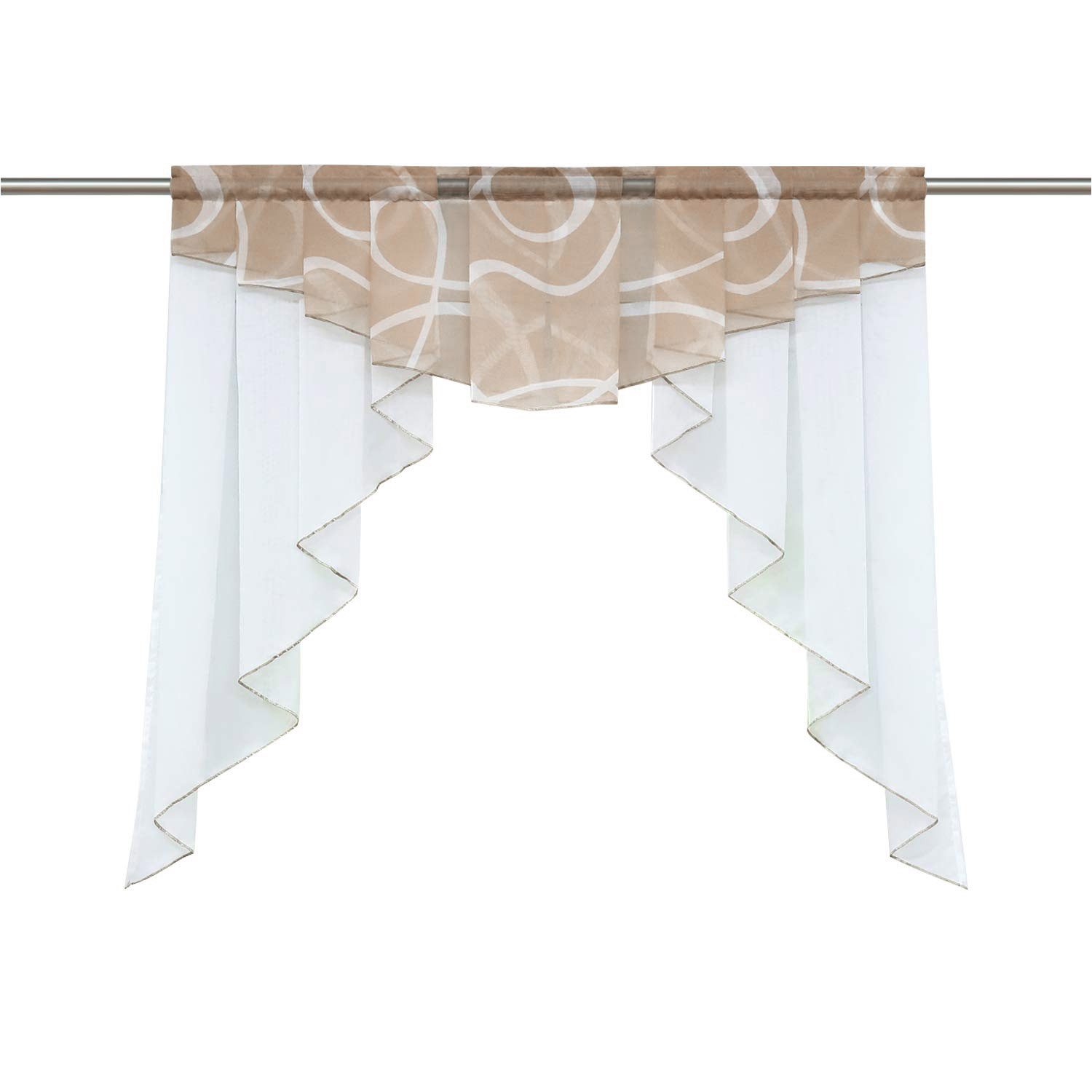 Der bedruckte Vorhangkopf verleiht Ihrem Zimmer einen Hauch von Persönlichkeit, während die strahlend weißen Seitenpaneele mit weichen Falten zeitlose Eleganz vermitteln. Der Kontrast schafft einen galeriewürdigen Blickfang – als ob ein individuelles Kunstwerk Ihr Fenster einrahmen würde.