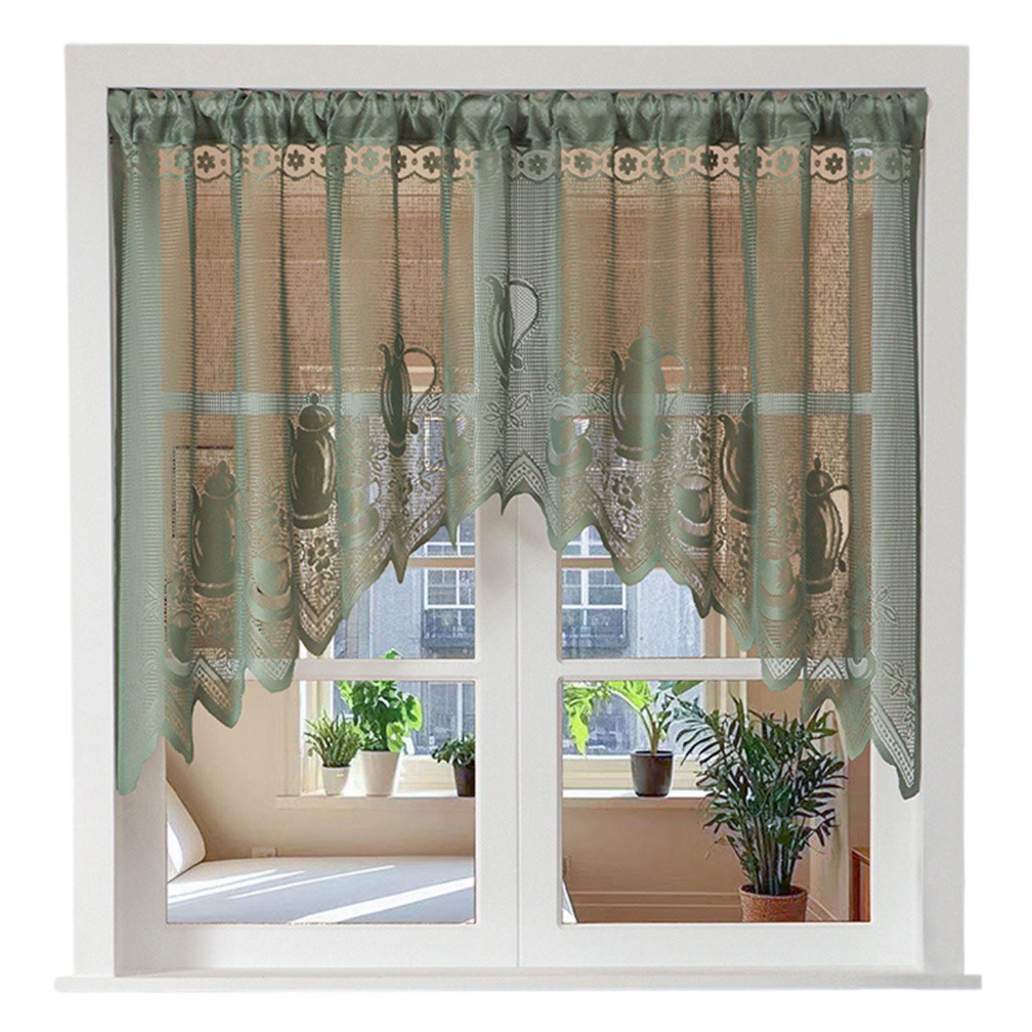 Design- Der Kombination aus Hohlen und Stickere. Die Bistrogardine hat eine Размер von 150×100/200x100 cm und ist in den Farben Grün, Weiß und Rosa erhältlich. Teekanne&Tasse Drucken, Perfekt für kleine Fenster, Cafés, Küchen, verleiht sie Ihrem Zuhause einen Hauch von Eleganz und Charme.