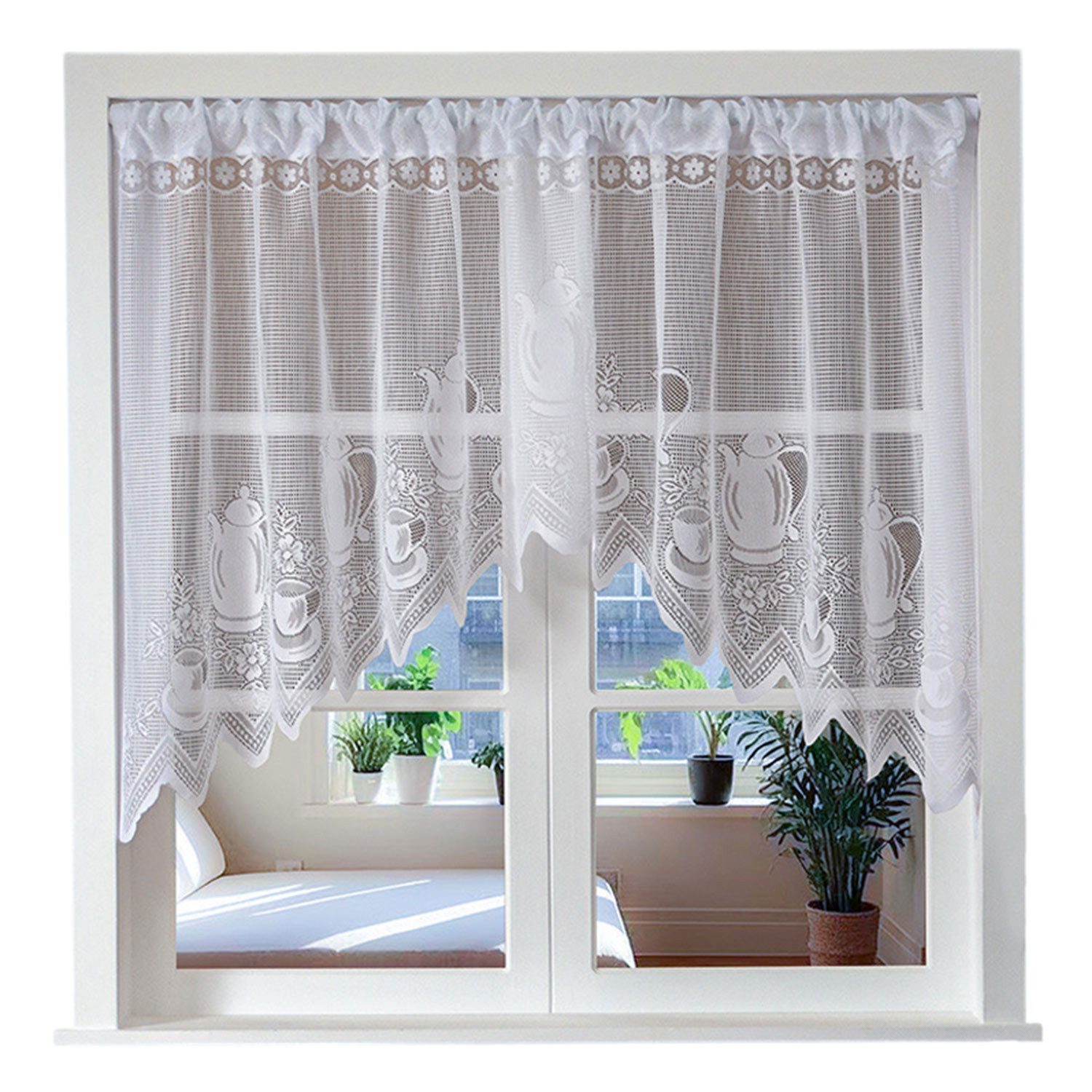 Kurze Vorhänge Fenster,Scheibengardine Bistrogardine mit Spitze Kurzgardinen,Cafe Vorhang mit Stangentasche, Gardinen für Café-Küche, Wohnzimmer und Dekoration
