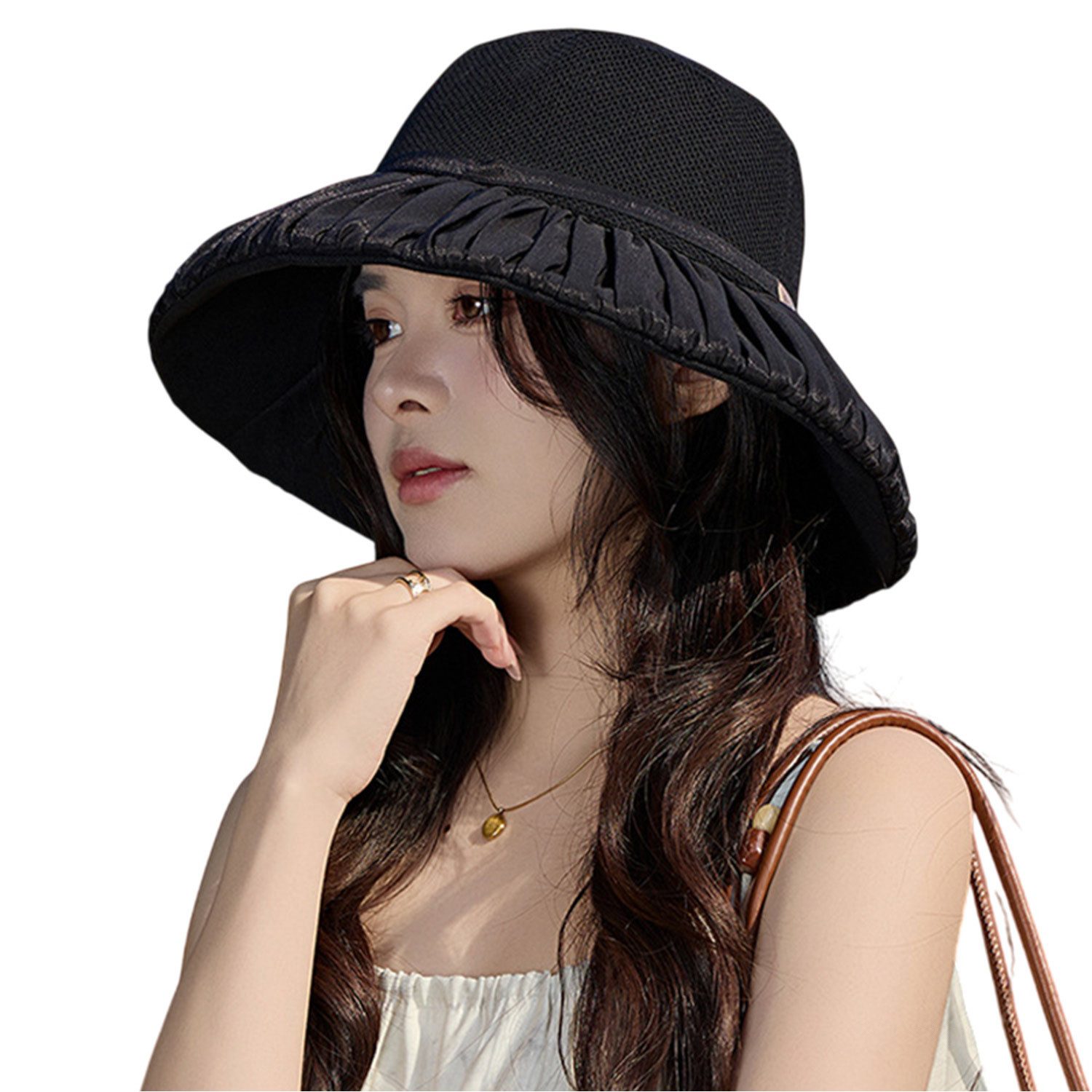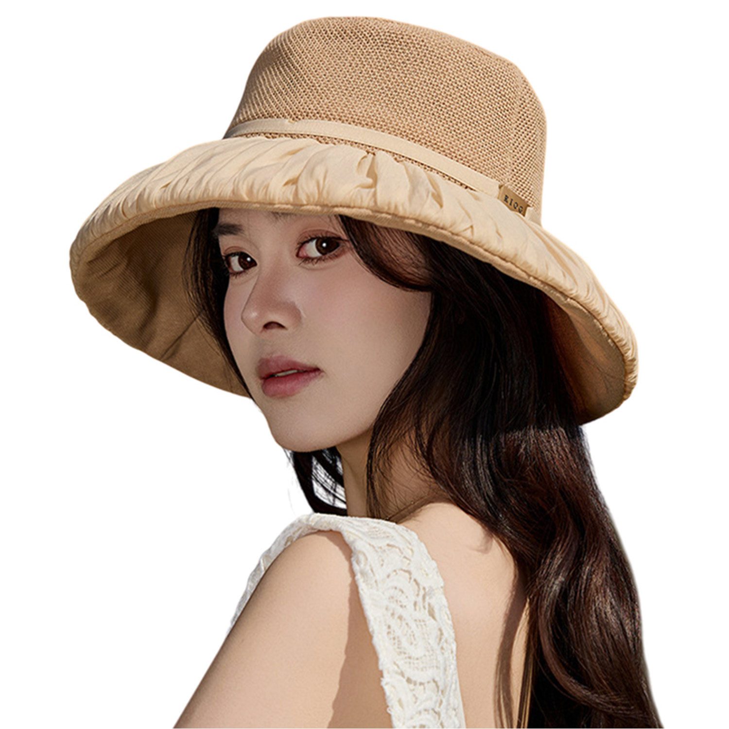 Sommerhut Damen Faltbarer Damen Sonnenhüte mit breiter Krempe UV-Schutz Mesh Strohhut Sommer Faltbar Strandhut