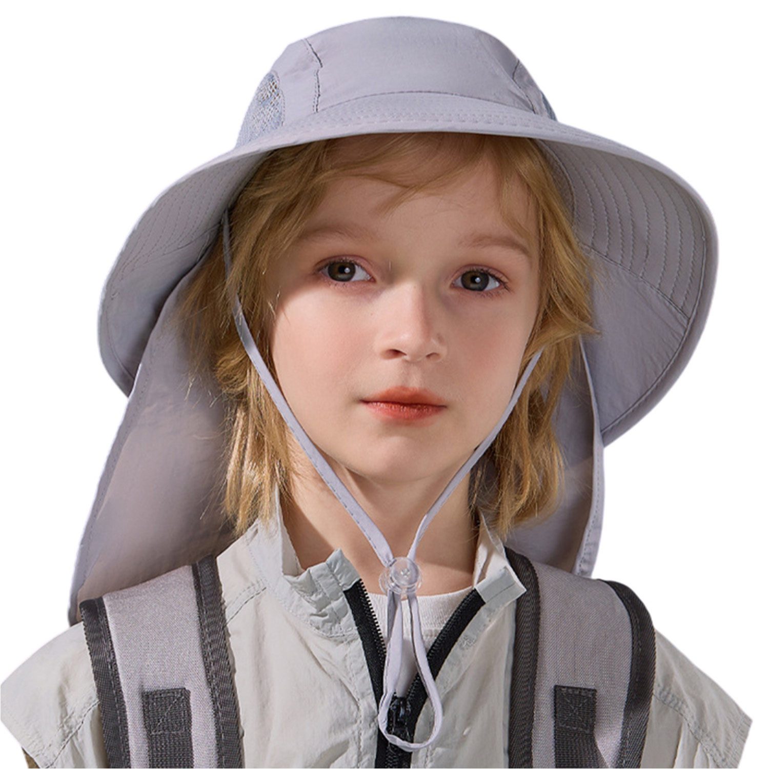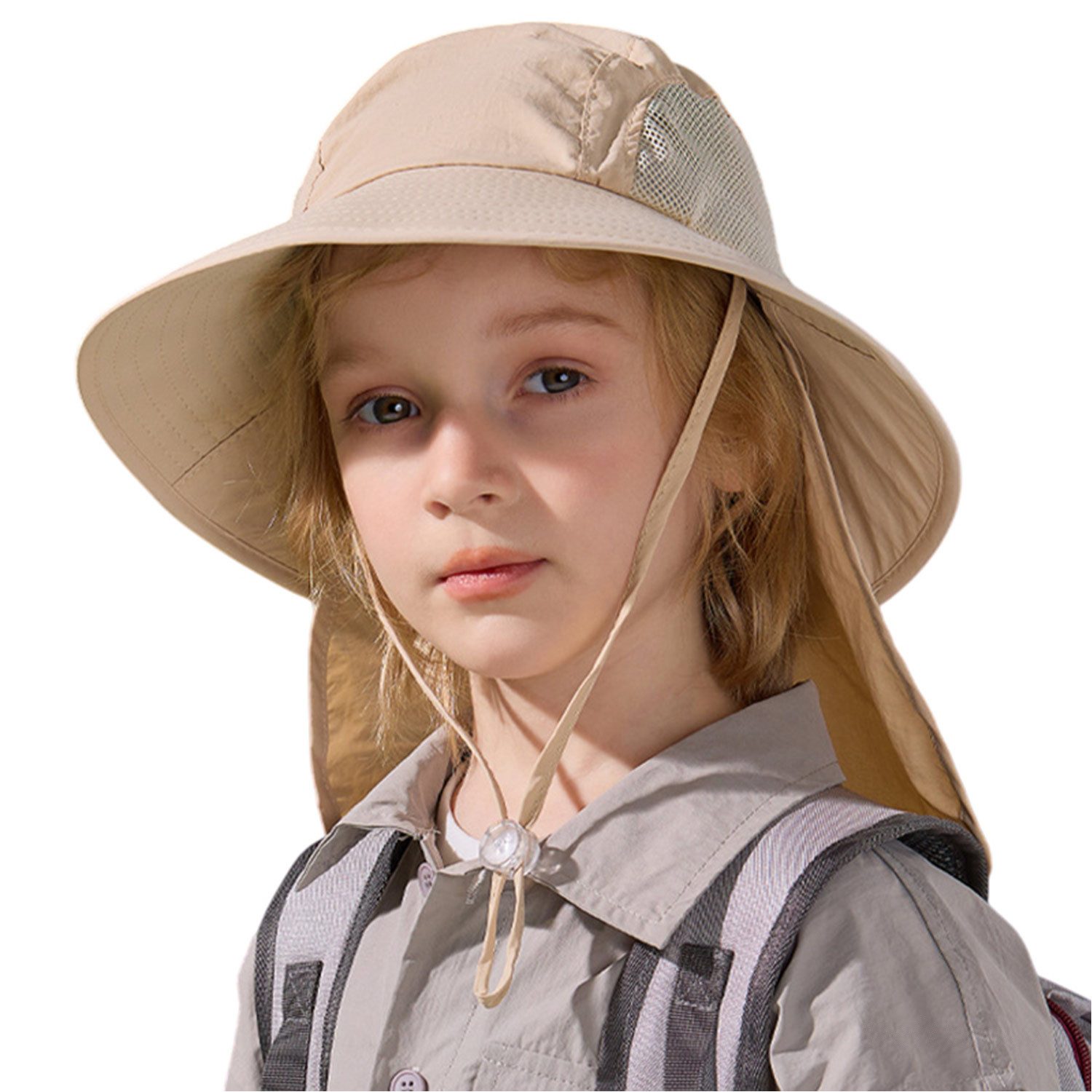 Der Hut hat eine Nackenkapuze, um den Hals Ihres Kindes vor Sonnenbrand zu schützen. Er schützt den Hals Ihres Kindes auch vor Mücken, wenn Ihr Kind im Wald wandert.