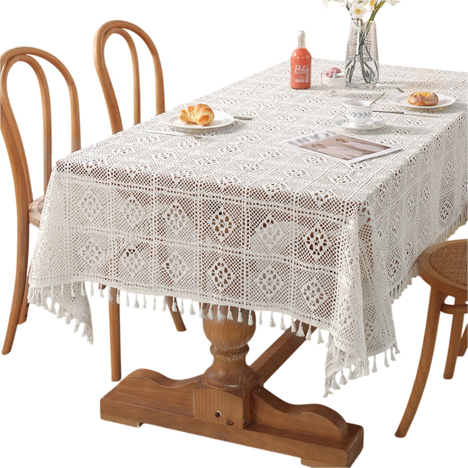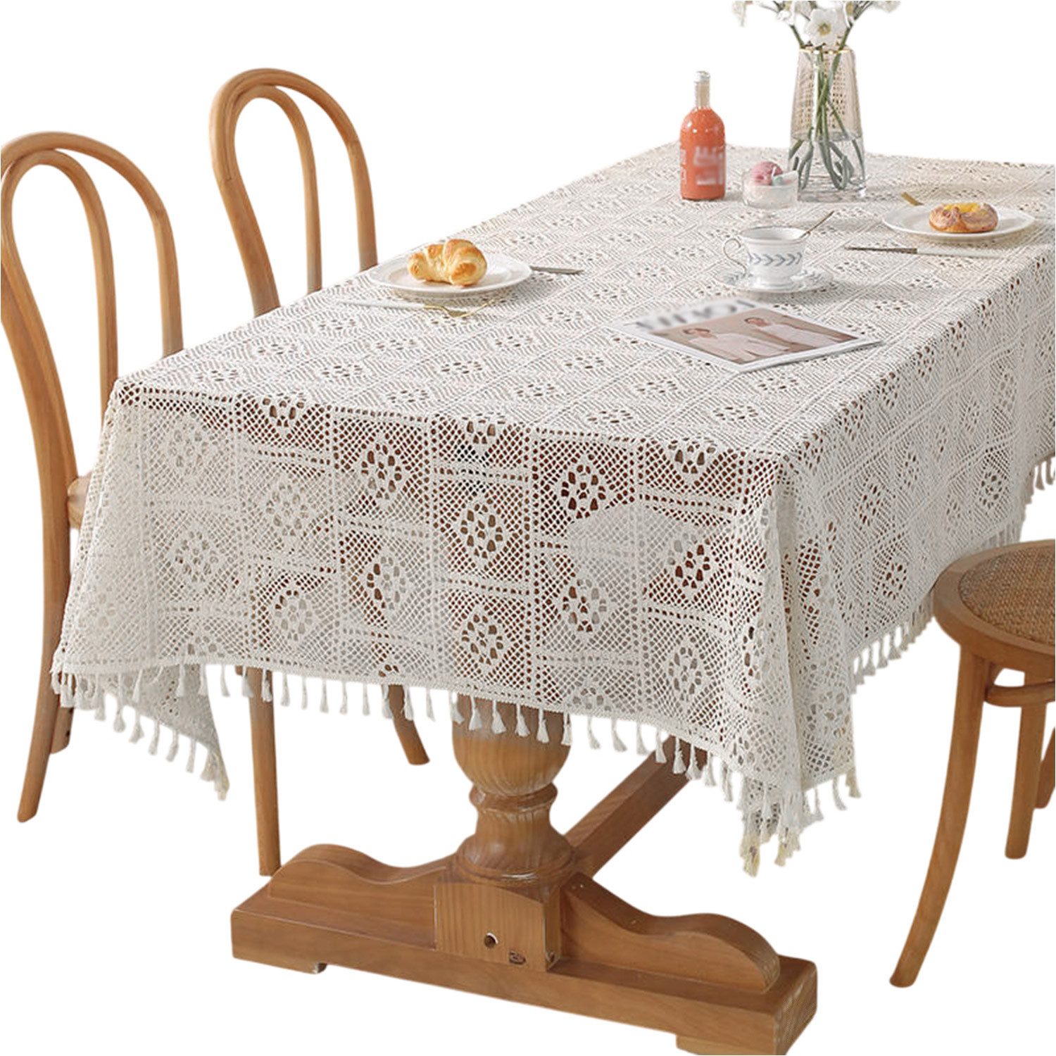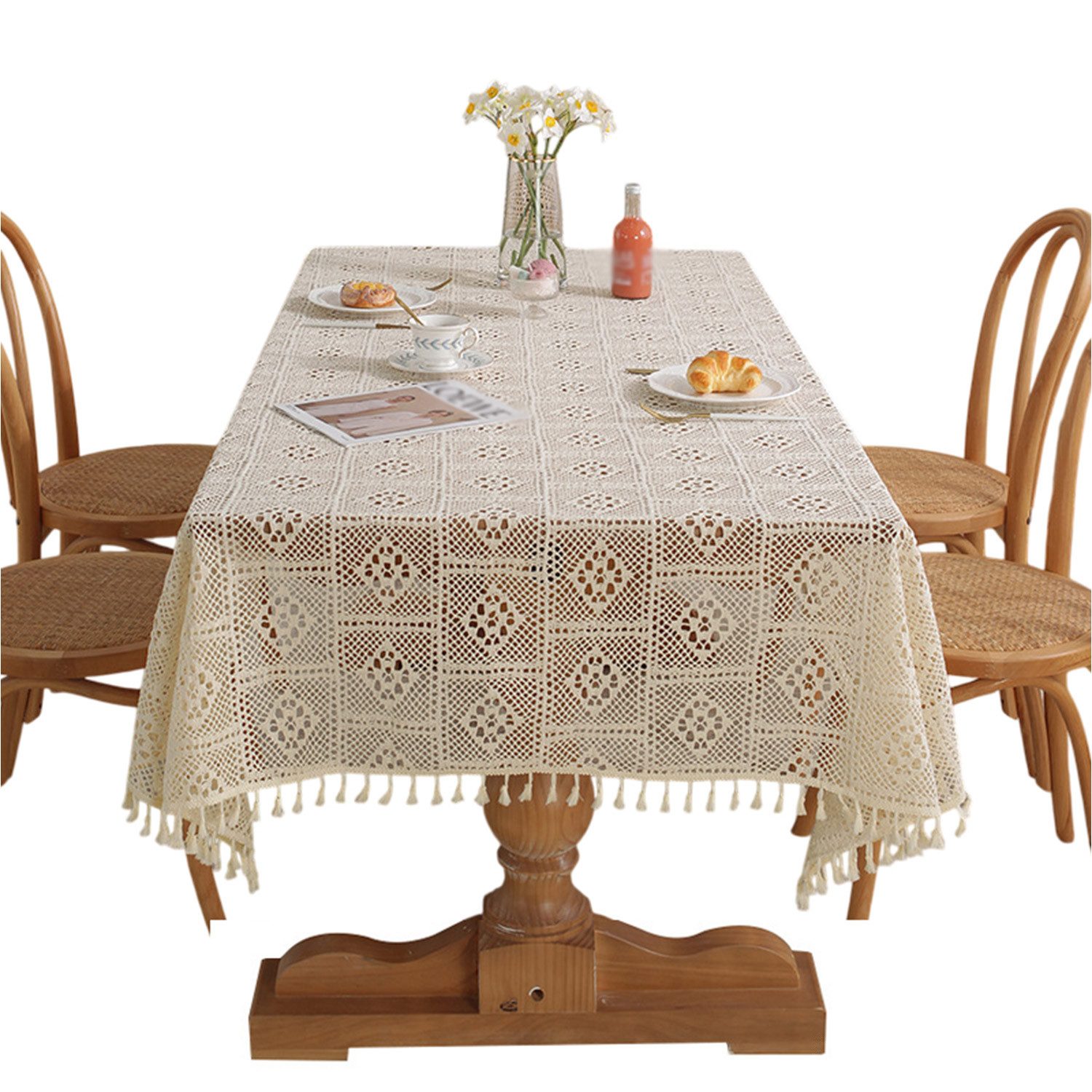 Tischdecke, Stricken Kariert Muster Tischtücher Polyester Baumwolle Tischdecken Vintage, rechteckig, gehäkelt, Tischdecke Tischtuch Draußen Schmutzabweisend für Esszimmer, Garten, Party, Hochzeiten oder Haushalt, Beige/Weiß