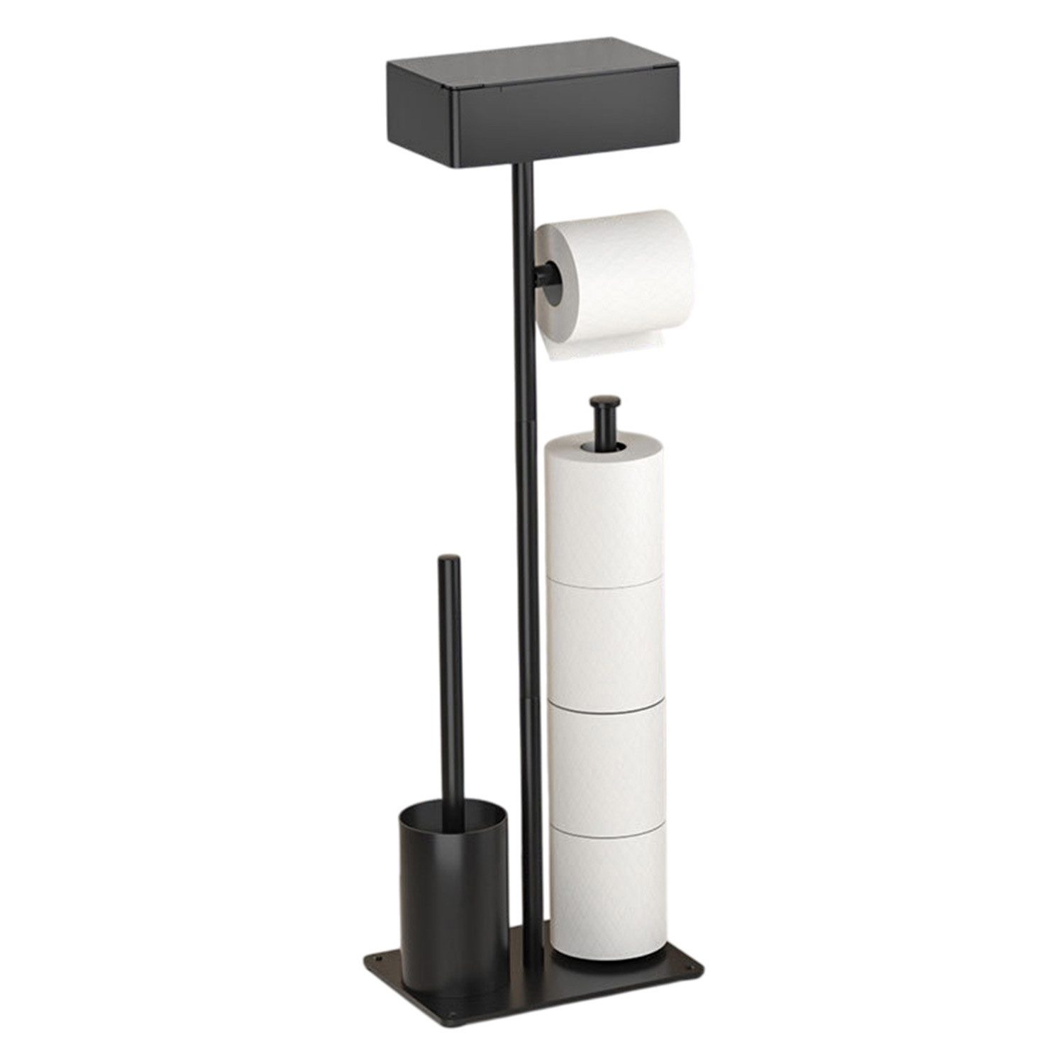 Freistehende WC-Garnitur mit Toilettenpapierhalter & Bürste – Metall schwarz mit Ablage, ohne Bohren
