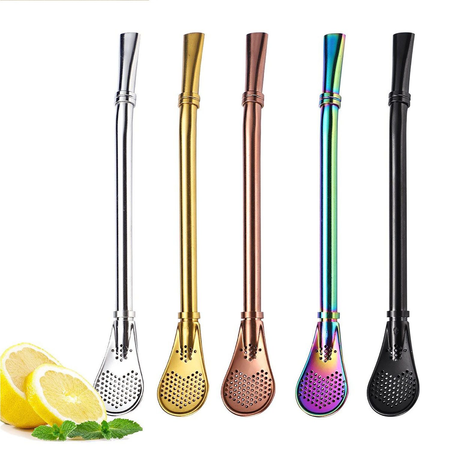 Praktischer Anzug : 5 x Strohlöffel, Gold, Silber, Roségold, Bunt,Schwarz (1 für jede Farbe), Strohhalme löffel in verschiedenen Farben sind erhältlich, Leichter zu unterscheiden und Trinkvergnügen zu schaffen.