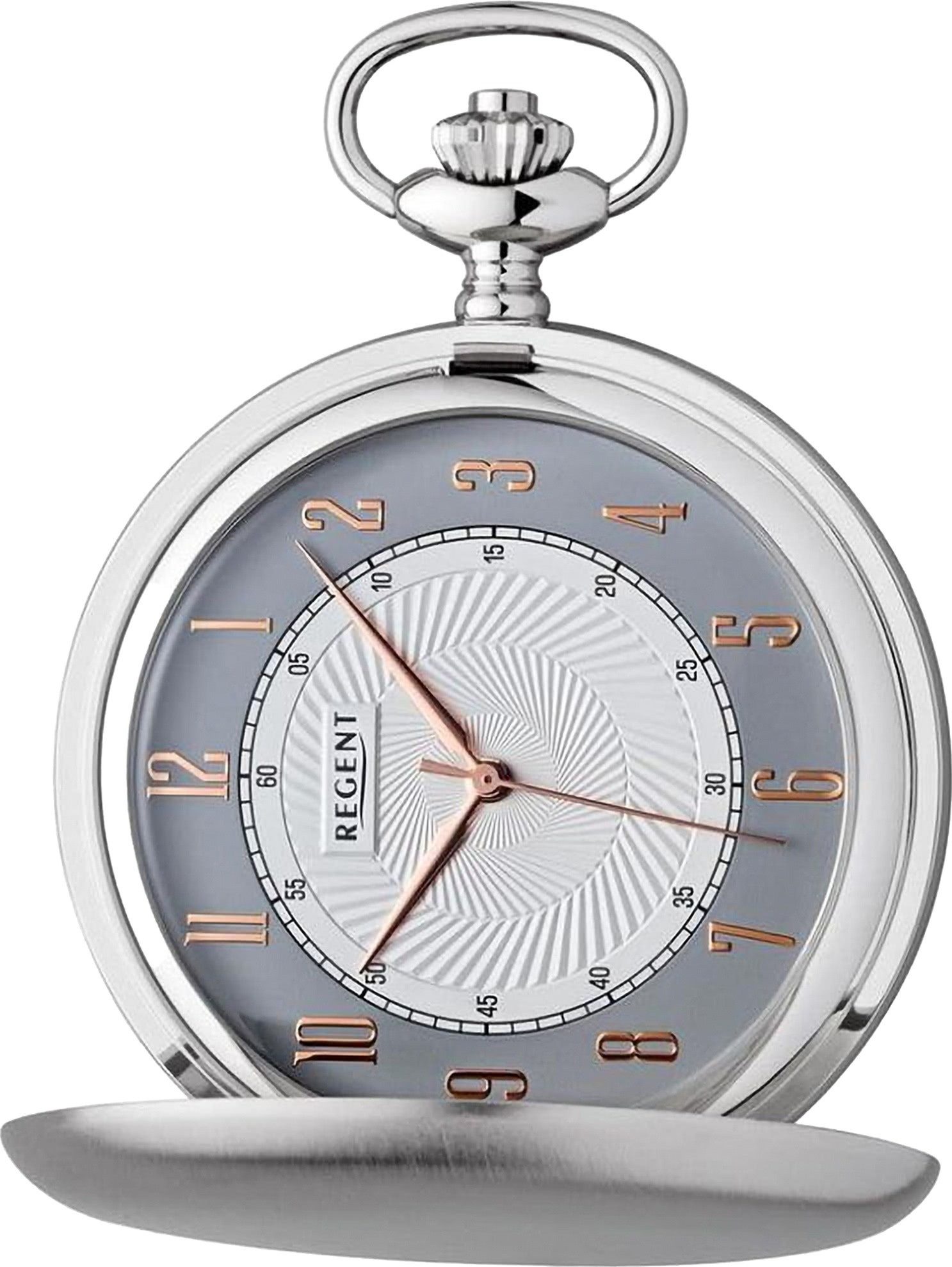 Die Elegant Uhr der Marke Regent hat ein schönes Armband aus in mit . Eine Uhr aus der Regent Taschenuhren Kollektion für Herren in der Gehäusefarbe silber mit Quarzwerk. Die Analoguhr mit Kunststoffglas hat ein Zifferblatt in der Farbe silber. Die Form der Uhr ist rund und das Gehäuse ist extra groß ca. 51mm im Durchmesser.