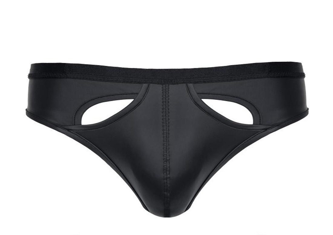 Erotischer Männder Dessous fetisch Slip in schwarz, gefertigt aus dehnbarem, mattem Wetlook-Material. Breiter Gummibund.