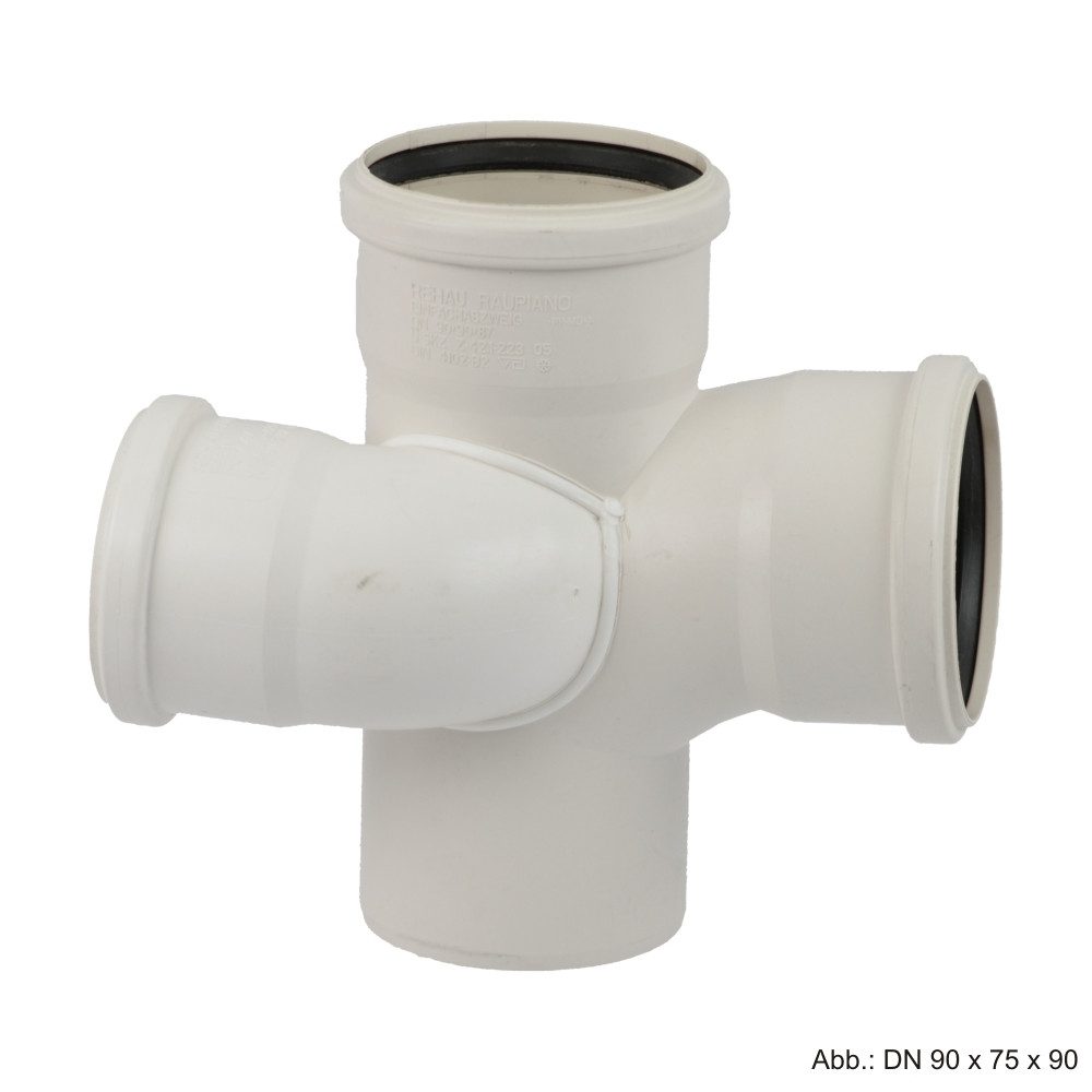 Rehau Schalldämmender Raupiano Plus Schachtabzweig rechts DN 110-75-110, 87° - Eigenschaften: Das Einsatzgebiet von Raupiano-Plus-Rohren ist in Entwässerungsanlagen nach DIN EN 12056 und DIN 1986-100 innerhalb von Gebäuden. Es ist in allen Objektarten (vom Einfamilienhaus bis Großobjekt) sowie im Neubau und bei Sanierungen zu finden. Die schalldämmenden Bestandteile des Systems Raupiano Plus stehen für Qualität, Ruhe und Wohnkomfort. Einsatzbereiche und -grenzen: Einsatzbereiche: einsetzbar bis 95°C (kurzzeitig); geeignet zur Ableitung chemisch aggressiver Abwässer mit einem pH-Wert von 2 bis 12; Rohrverbindungen sind bis zu einem Wasserüberdruck von 0,5 bar dicht Rohre und Formstücke dürfen nicht verwendet werden, wenn: die Leitungen auf Dauer einer Temperatur höher als 90°C (kurzzeitig 95°C) ausgesetzt sind; in den Leitungen benzin- oder benzolhaltige Abwässer geführt werden; die Leitungen im Erdreich oder im Freien verlegt sind Material: Rohre und Formteile : aus mineralverstärktem RAU-PP; Lippendichtring: Styrol-Butadien-Kautschuk (SBR) Farbe: weiß (ähnlich RAL 9003) eingefärbt RH11237611001