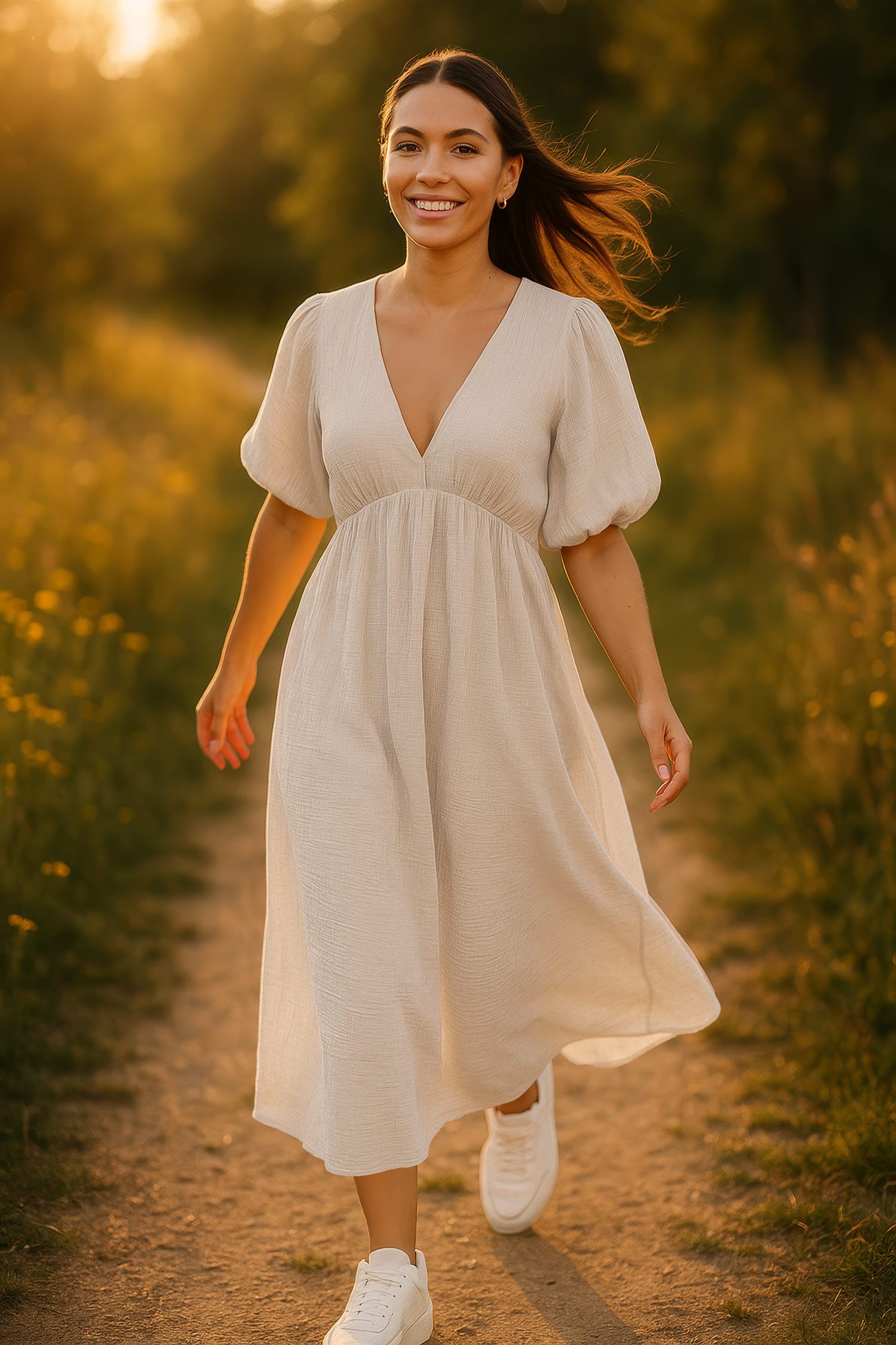 Vielseitigkeit ist ein weiteres Highlight dieses Kleidungsstücks. Tragen Sie es als Sommerkleid, lässige Tunika oder stilvoller Strand-Cover-Up. Verfügbar in 8 angesagten Farben – von klassischem Schwarz und Weiß bis hin zu lebhaftem Orange und zartem Babyblau – finden Sie für jeden Anlass die passende Nuance. Die femininen Puffärmel und die Rückenschleife setzen modische Akzente, die begeistern.