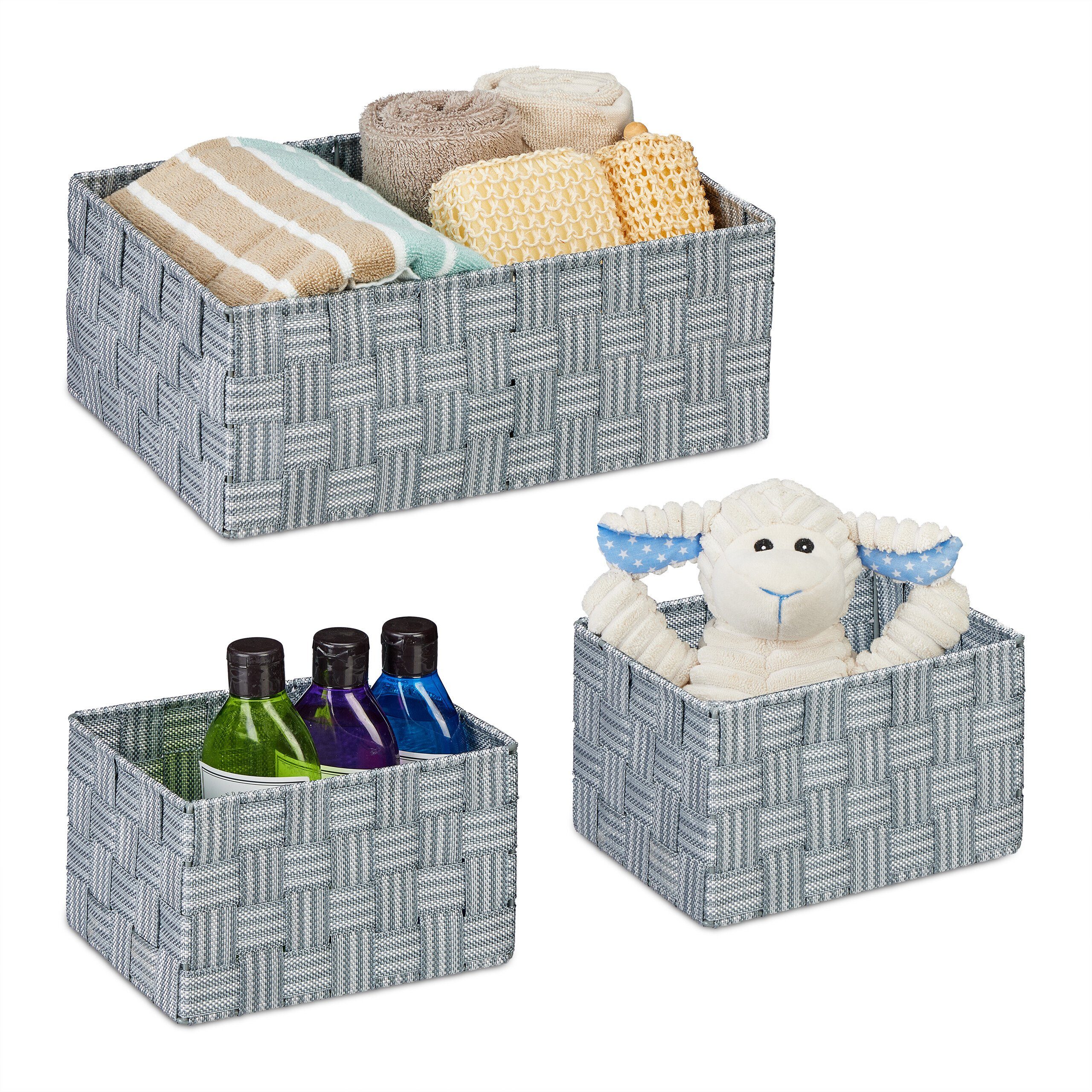 Flechtkörbchen für Schublade und Regal - Im 3er Set mit 2 verschiedenen Größen - Ideal für Kosmetik und andere Badutensilien - Praktisch auch in Wohn-, Schlaf- oder Kinderzimmer - Flechtoptik setzt dekorative Akzente in jedem Raum - Aus robustem und strapazierfähigem Kunststoff - Ineinander stapelbar zum platzsparendem Verstauen