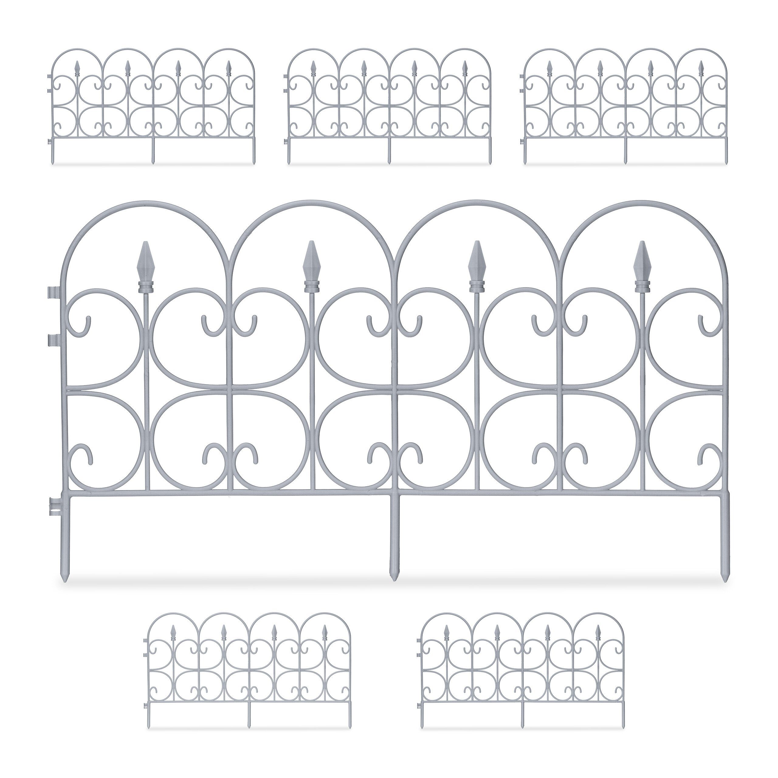 Steckzaun für den Garten - Mit Beetumrandung für klare Abgrenzungen im Garten sorgen - Höhe ist ideal für Blumenbeete, Rabatten und Rasenflächen - Verschnörkeltes, antikes Design zur dekorativen Gartengestaltung - Beetumzäunung mit den Erdspießen bequem in die Erde stecken - Robuste Beeteinfassung aus wetterfestem Kunststoff in Grau - Blumenzaun nach Belieben erweitern und individuell aufstellen