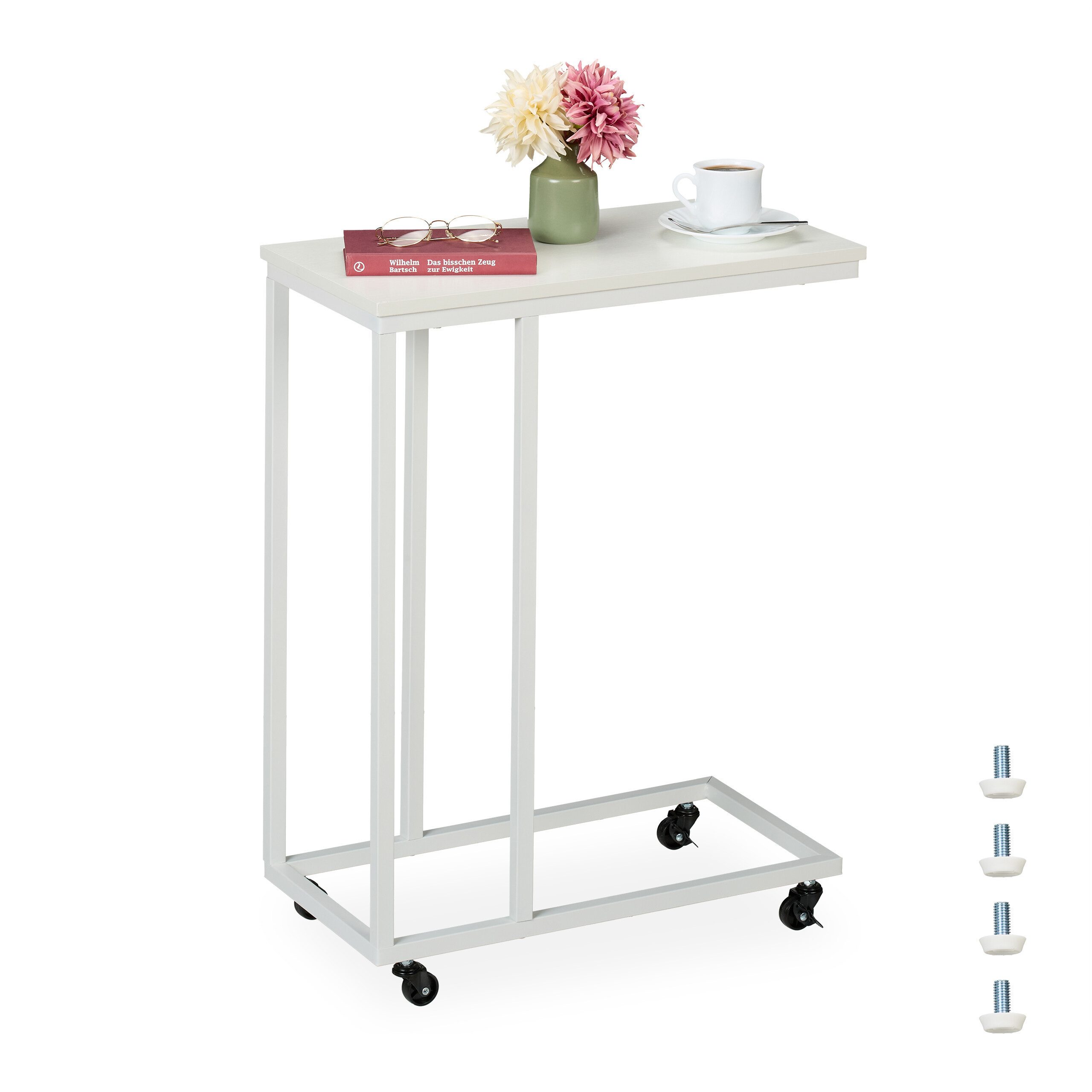 Moderner Wohnzimmertisch in C-Form - Laptop, Getränke uvm. in angenehmer Höhe ablegen - Frei platzierbar in Wohn-, Schlaf- oder Jugendzimmer - C-Form ideal zum Schieben unter Sofa oder Bett - Bequem rollbar dank 360°-Rollen mit Feststellbremsen - Metallgestell mit robuster MDF-Platte für cleanen Look - Rollen bei Bedarf mit höhenverstellbaren Bodenpuffern ersetzen