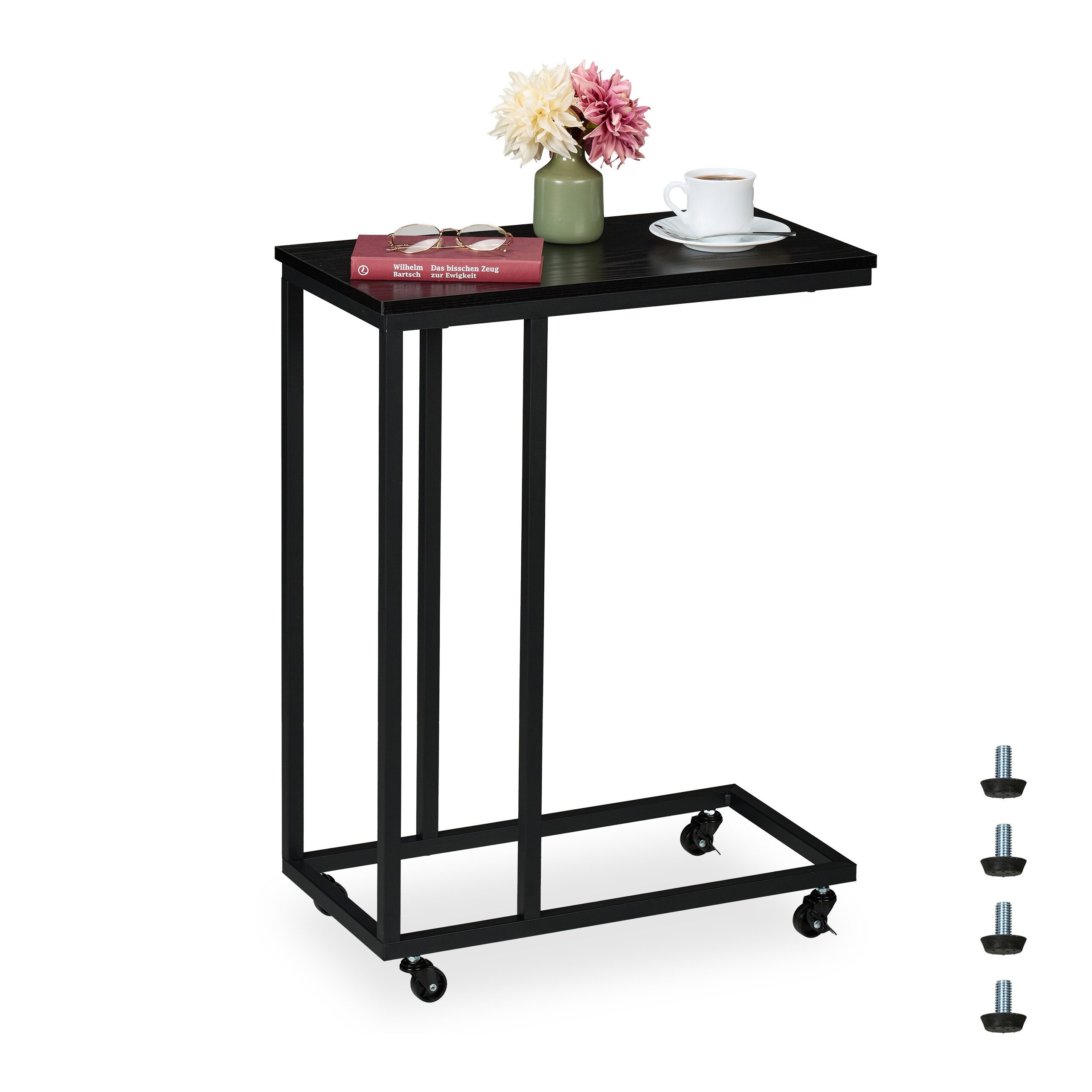 Moderner Wohnzimmertisch in C-Form - Laptop, Getränke uvm. in angenehmer Höhe ablegen - Frei platzierbar in Wohn-, Schlaf- oder Jugendzimmer - C-Form ideal zum Schieben unter Sofa oder Bett - Bequem rollbar dank 360°-Rollen mit Feststellbremsen - Metallgestell mit robuster MDF-Platte für cleanen Look - Rollen bei Bedarf mit höhenverstellbaren Bodenpuffern ersetzen