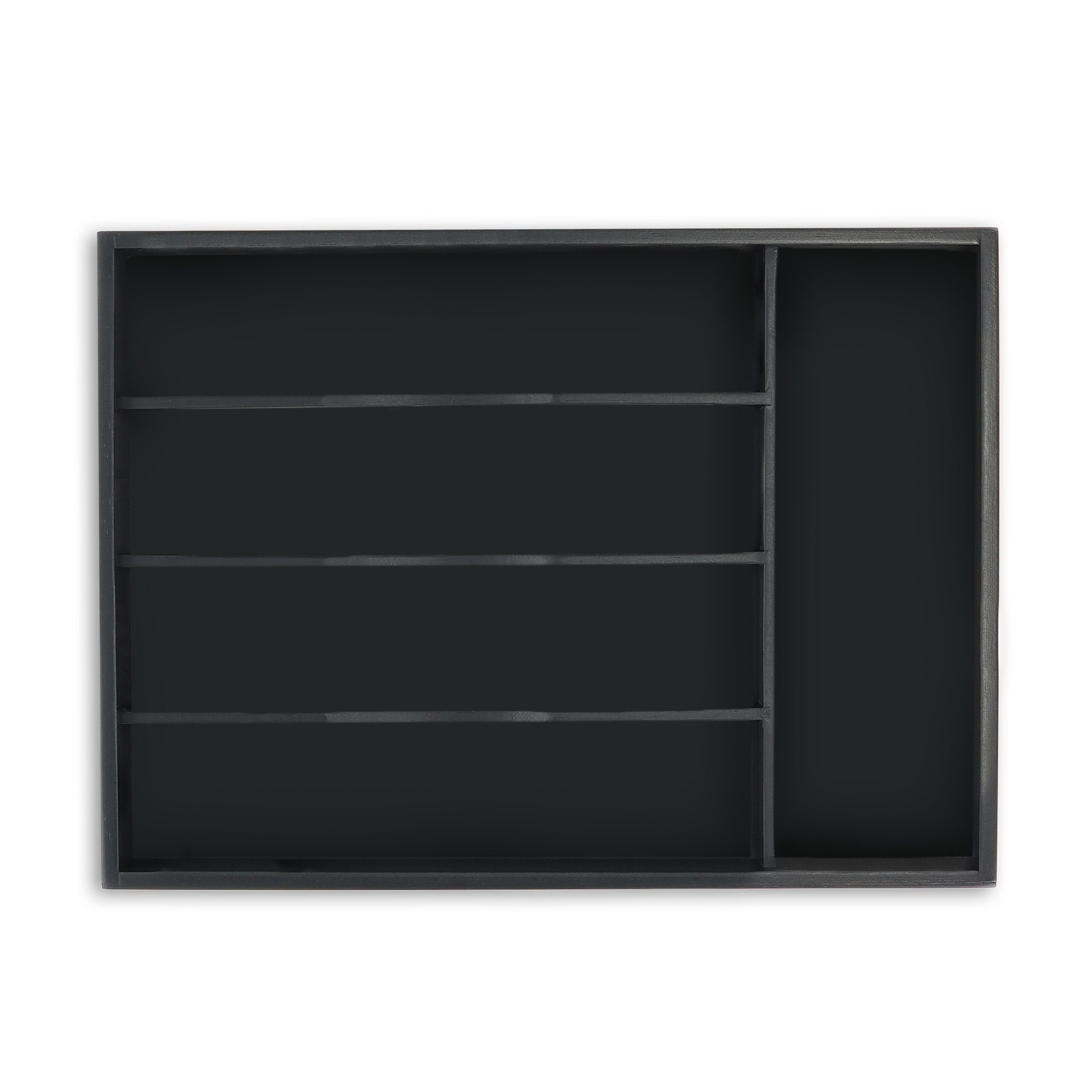 Vielseitiger Besteckorganizer für die Schublade - 5 große Fächer für Besteck u.a. Küchenutensilien - Schafft Ordnung und Übersichtlichkeit in der Schublade - Robustes Material in schlichtem, schwarzen Look - Aufbewahrung von Bastelutensilien oder Bürobedarf - Kompakte Размер passt in gängige Schubladen